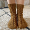The perfect pair of cozy sock for a slow weekend around the house. Knitted with a bit of positive ease for some extra comfort. The Cosy Weekend socks is a cuff down pattern that you can knit using any method of your preference. With a 3×1 wide rib and a pair of chunky cables run along the front of the socks.
