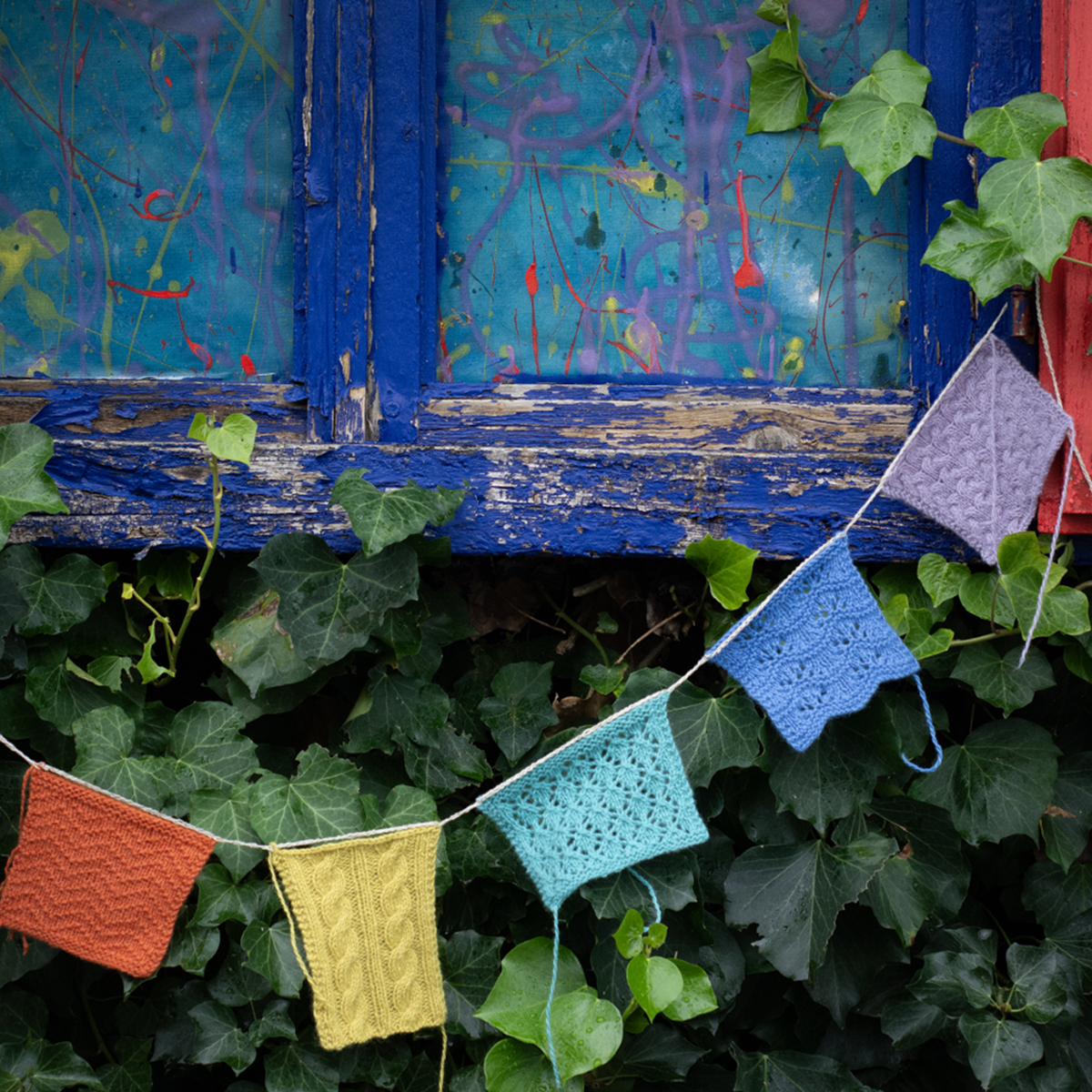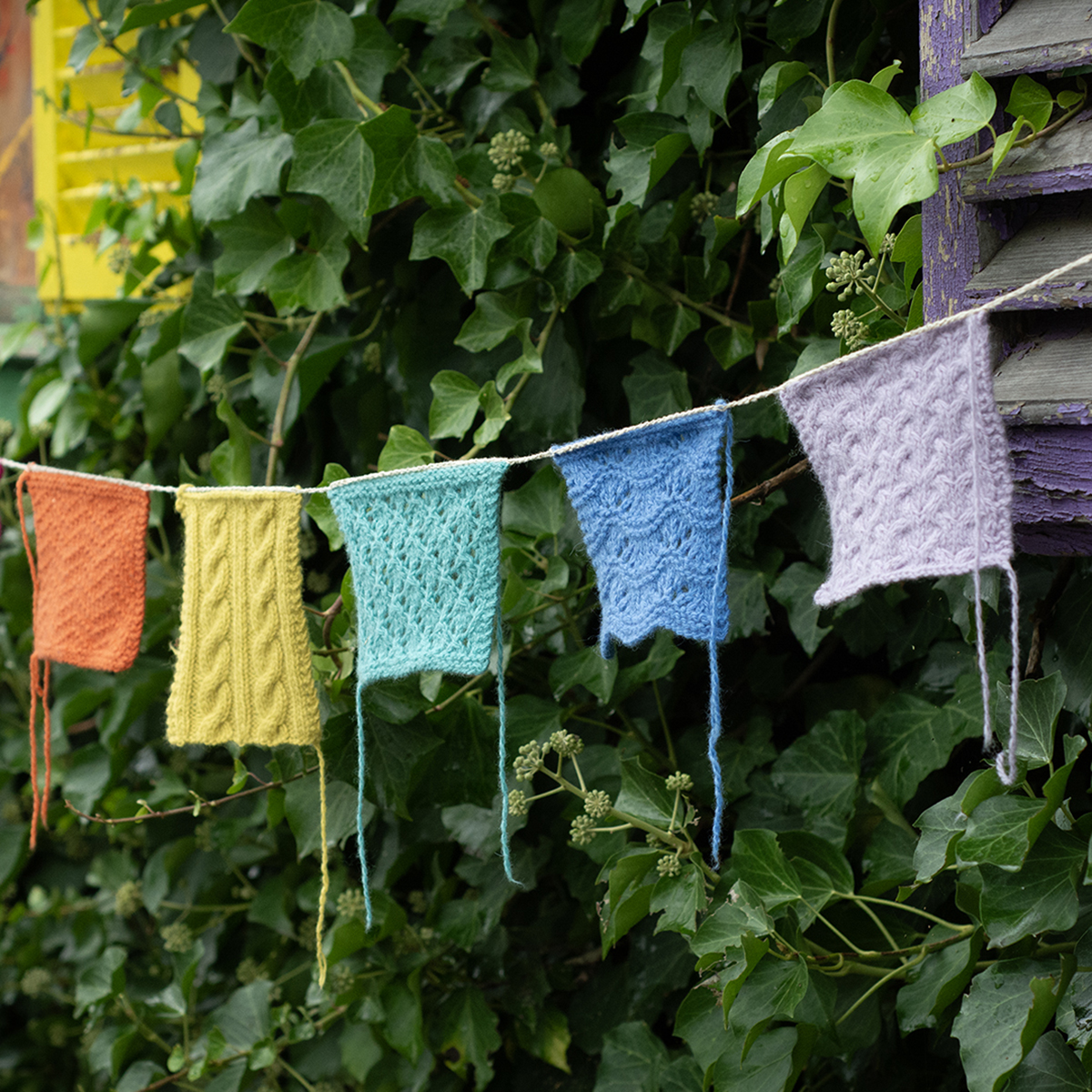But the fun doesn’t stop there—once the hat is complete, the leftover yarn becomes part of a meaningful project. Use it to create six or eight small Tibetan Karma Flags, each featuring a different stitch pattern. These flags, inspired by the colorful Tibetan prayer flags seen throughout the Tibetan Plateau; designed to carry your hopes and intentions into thewind. They also offer a wonderful way to practice new knitting techniques like binding off, gauge experimentation, and blocking. The best part? The quick gratification that comes from finishing each small flag.