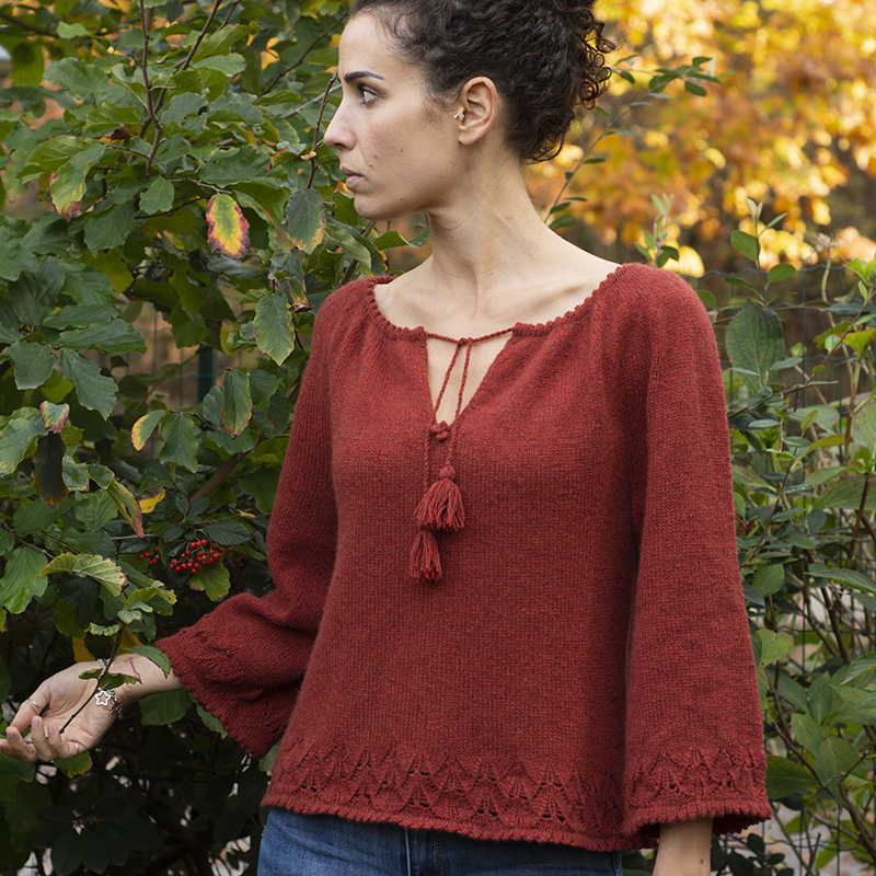 Wusai comes from Ukrainian and means “the one with whiskers”. It is a richly textured design that, in addition to knits and purls, incorporates other simple techniques such as slipped stitches and three-stitch cables.