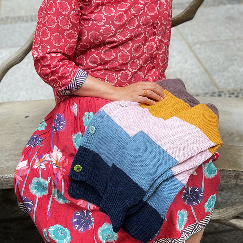 This is a simple (or not so simple, as you’ll discover) cardigan. Many could easily miss it among so many other designs. But the blocks of color, the combination of five spectacular colors, make it stand out. Make it so beautiful… extraordinary. Don’t you already feel the urge to find in your stash five colors for this cardigan?