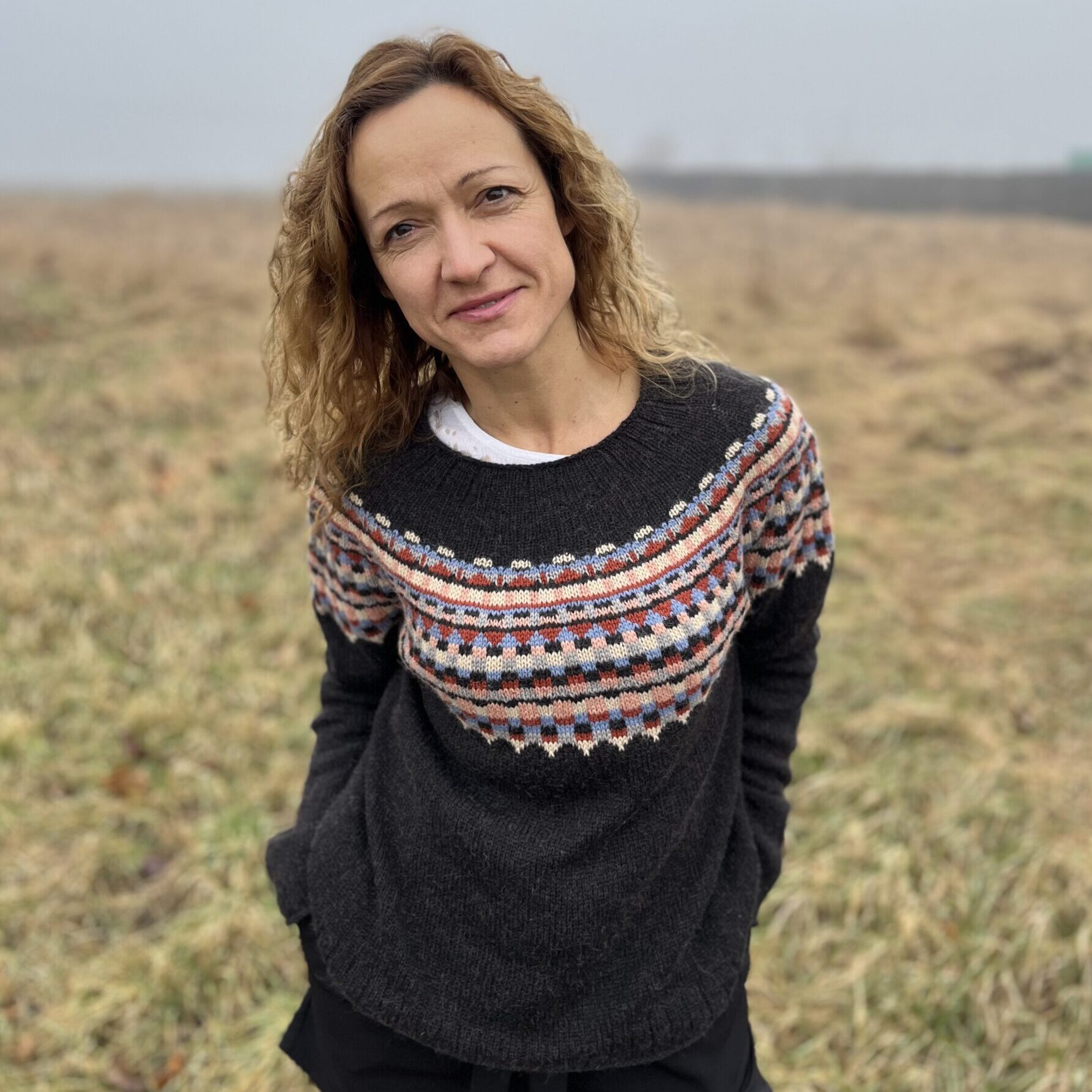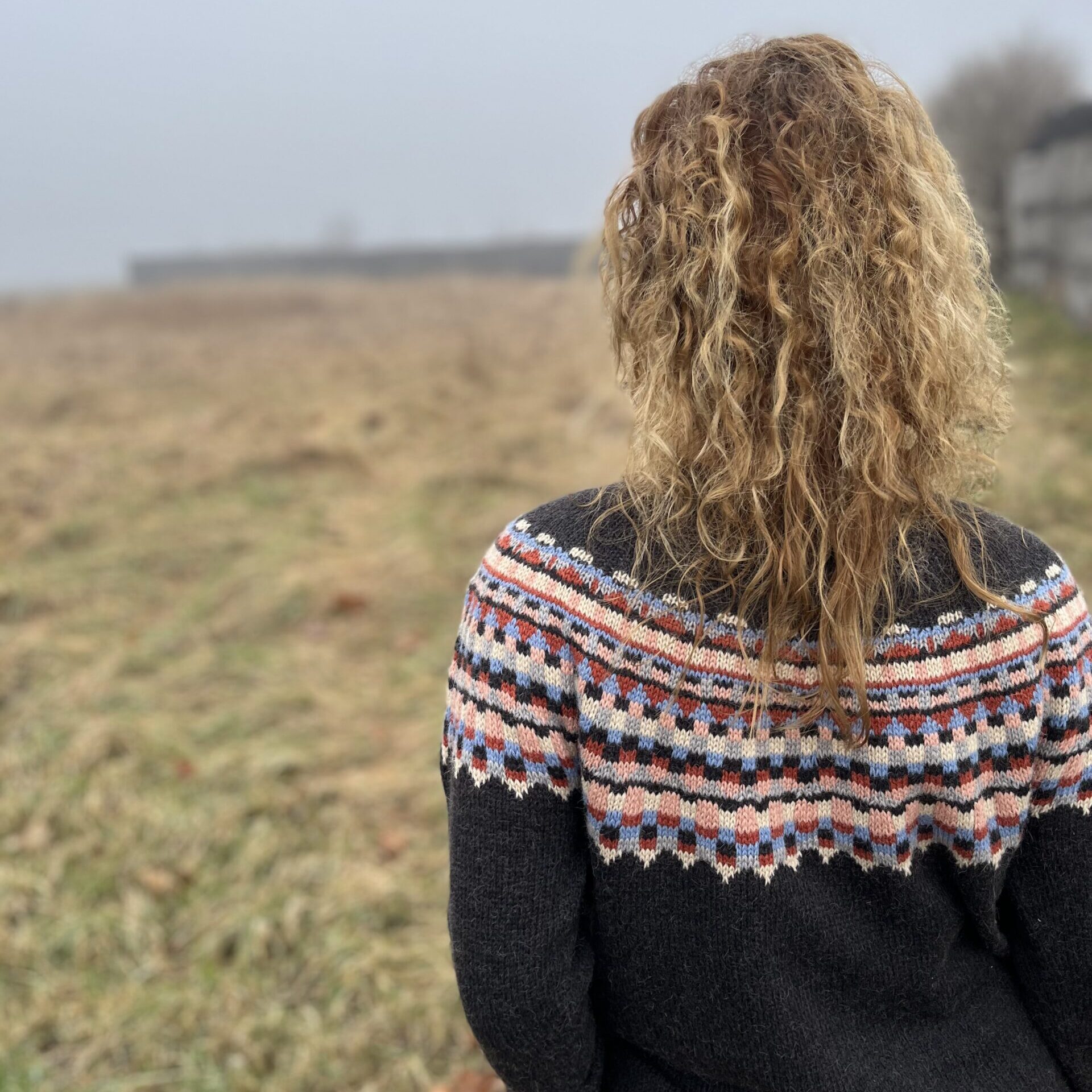 Awilda is a sport weight sweater knit from the top down, featuring playful, easy-to-work colorwork, and a relaxed, cocoon-fit body. This pattern is a great stash buster and opportunity to play with color!