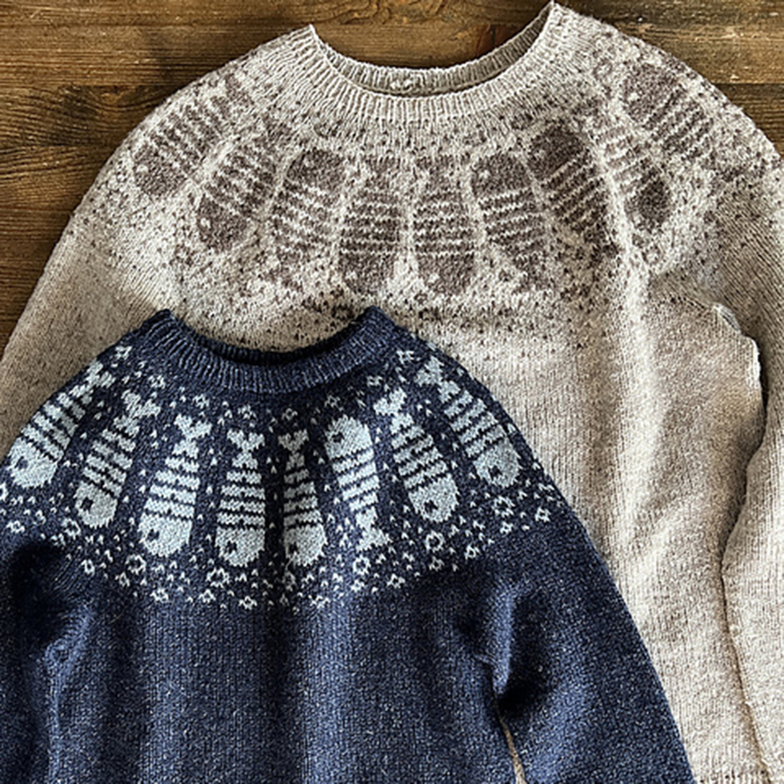 Inspired by the rhythmic German rhyme, “Fischers Fritz fischt frische Fische…”, these designs celebrate the heritage of stranded colorwork with a contemporary, seamless circular yoke. Whether you are knitting for the next generation or yourself, the “Fritz” collection brings the serene spirit of the seaside to your wardrobe.