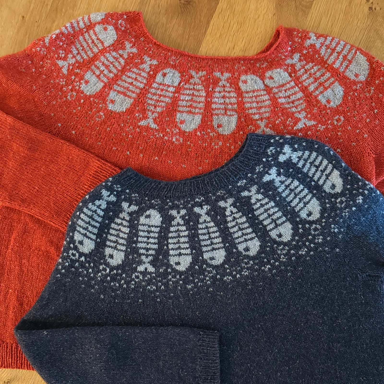 For a truly extraordinary finish, we invite you to experiment with our new Fior di Cashmere collection. By mixing these fibers, you create a yoke with unparalleled depth—the softness of cashmere brings a gentle “bloom” to the iconic swimming fish motif, making the colorwork practically dance across the fabric.