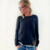 B(l)ack to Life is worked seamlessly from the top down. The yoke is shaped by using the contiguous set-in sleeves method developed by Susie Myers. First the yoke is worked back and forth to the final neck CO. When the neck shaping is complete, the yoke is worked in rounds to sleeve separation. Sleeve stitches are then placed on hold and the underarm stitches are cast on using your preferred method. Then the body is worked in rounds, top down, to the ribbing. Sleeve stitches are then picked up again to work the sleeve in rounds, top down, to the cuffs. Neck finishing is worked next. A cute and easy flower embroidery is added last.