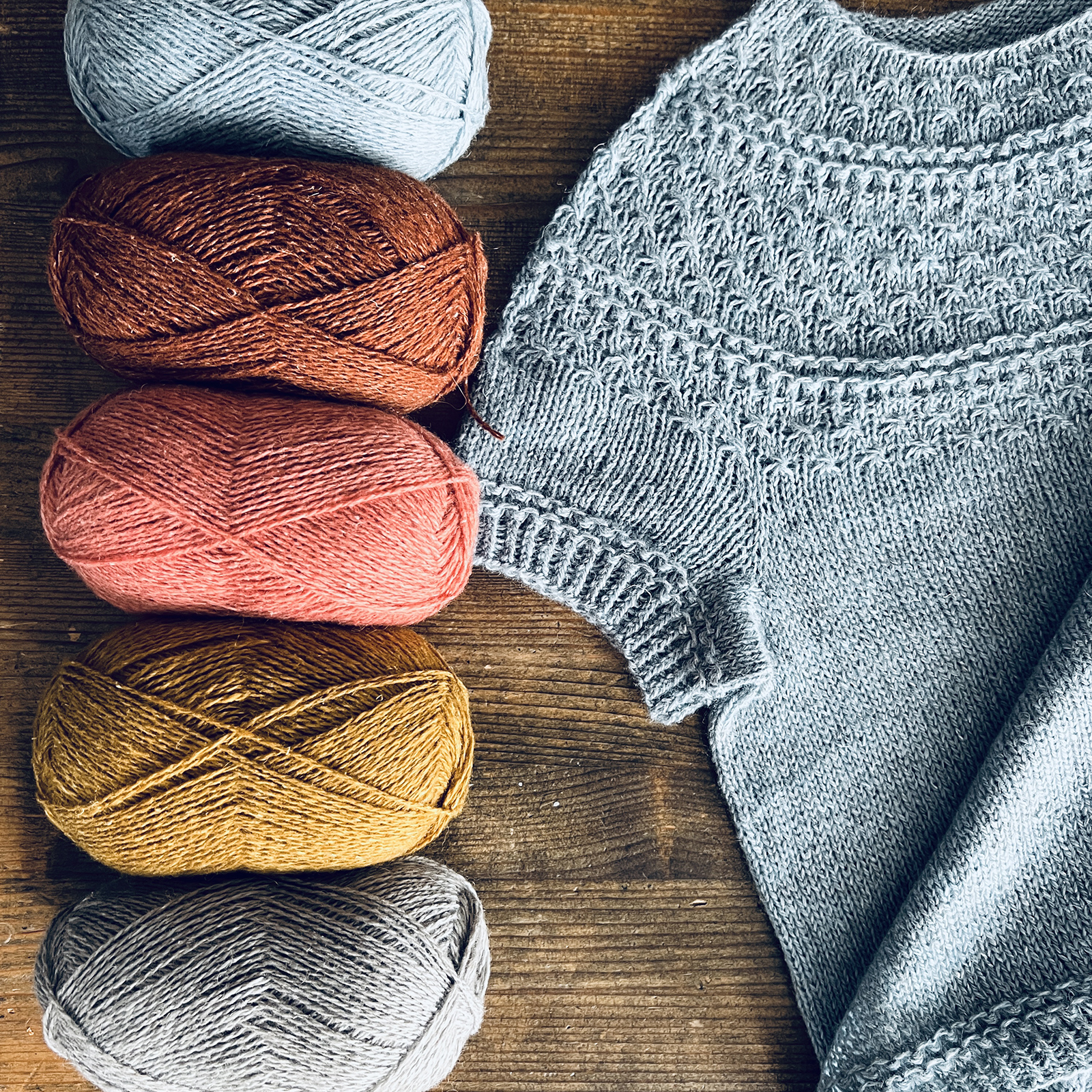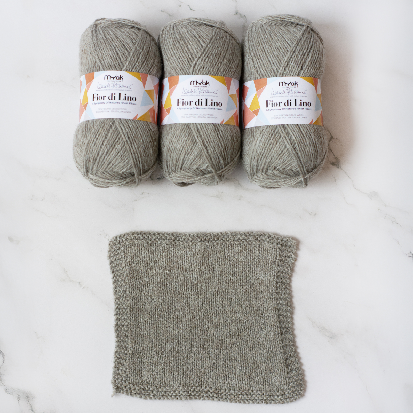 Yarn:4 (4, 4, 5, 5)(6, 6, 6, 7) balls in mYak Fior di Lino Collection Fingering Weight