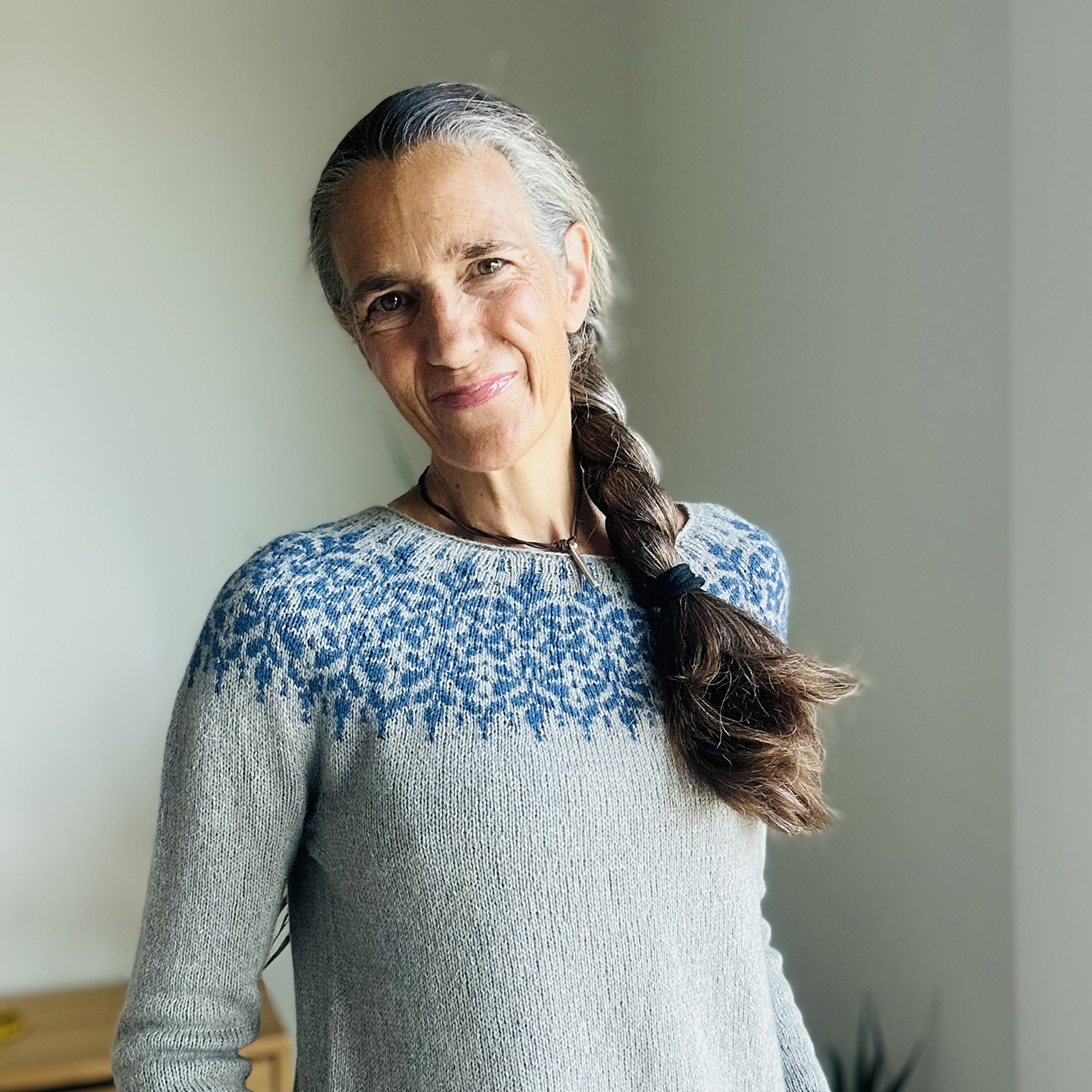 But this design truly shines in every palette — wonderful test knitters like Nicola and Stanette brought it to life with their own color choices, each one completely unique and absolutely beautiful.  Nicola Stauder knit hers in Mountain Mist and Denim while  Stanette Militello chose Graphite and Glacier. The perfect combo? It’s all about your personal garden.