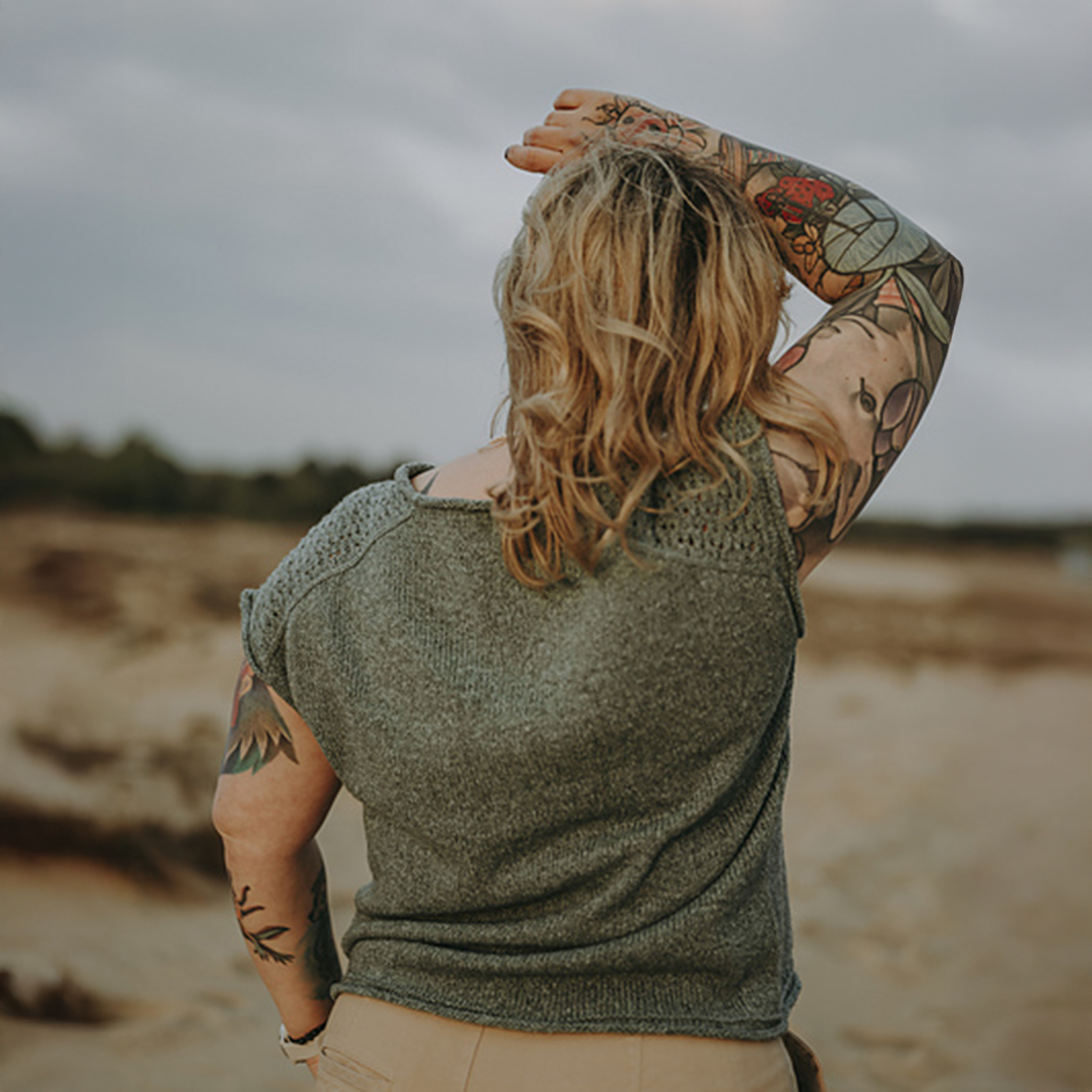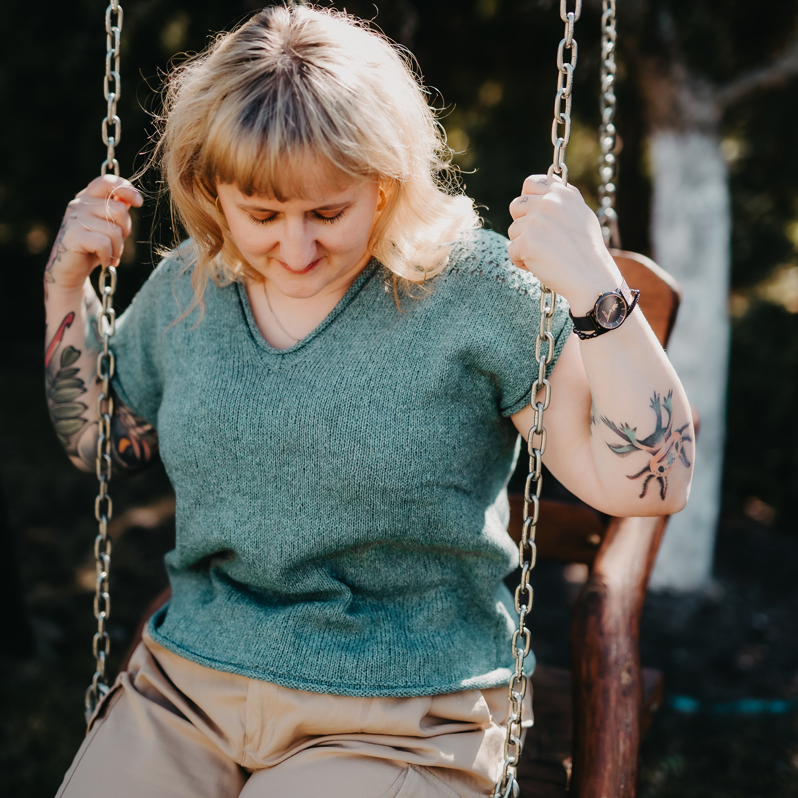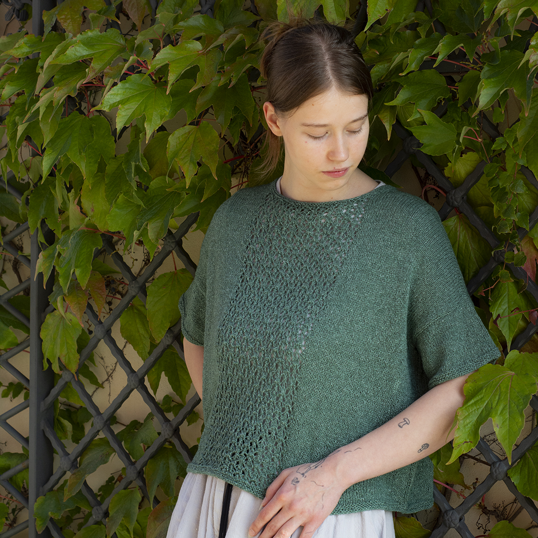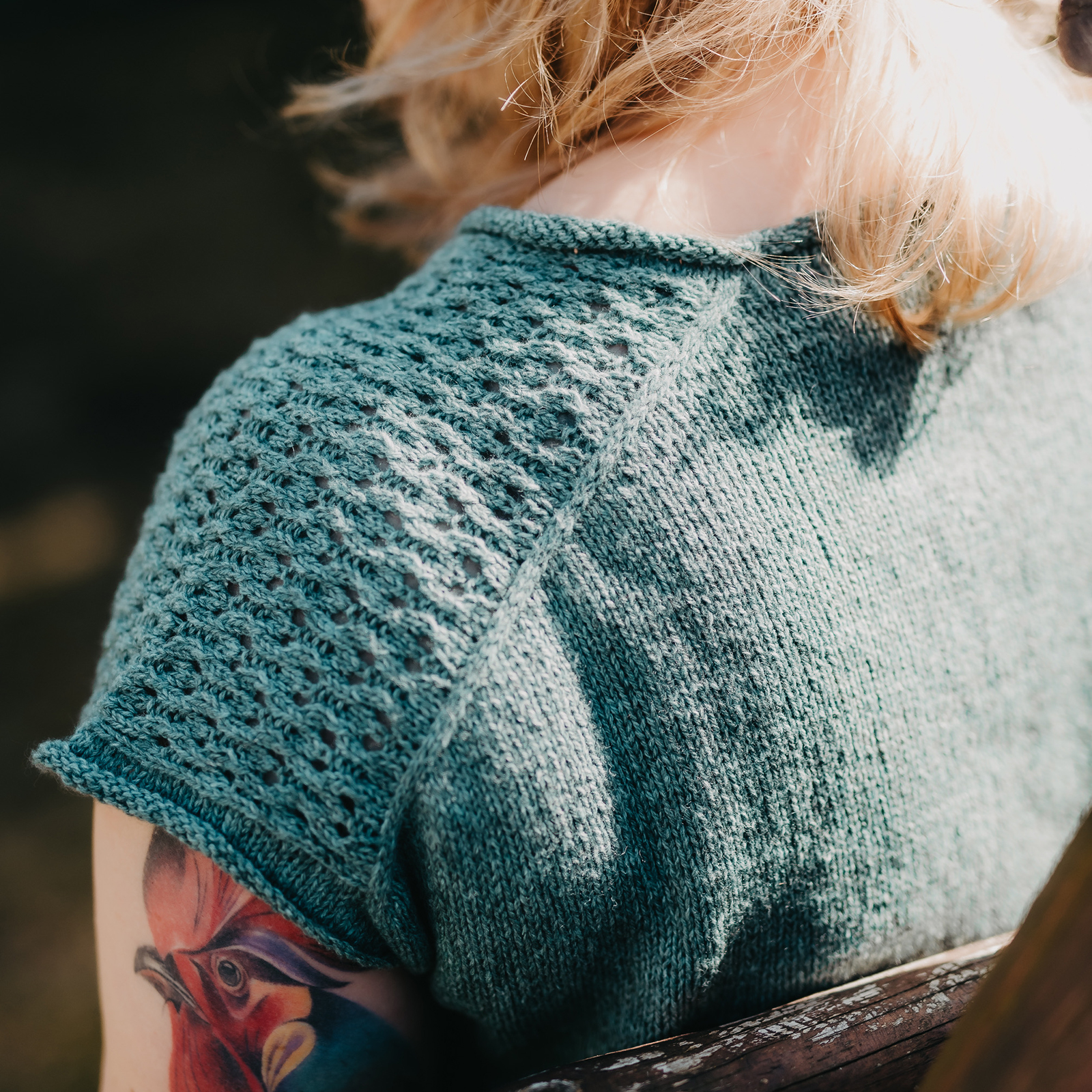 Ah, the lazy days of summer! Keep cool in this versatile top, equally at home dressed up or down. The soothing hue evokes refreshing lakes and lush, leafy trees while the lace detail adorns the shoulders like a sprinkling of dappled sunshine which pierces the canopy as you relax in the shade.