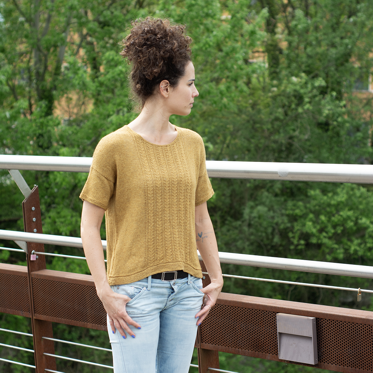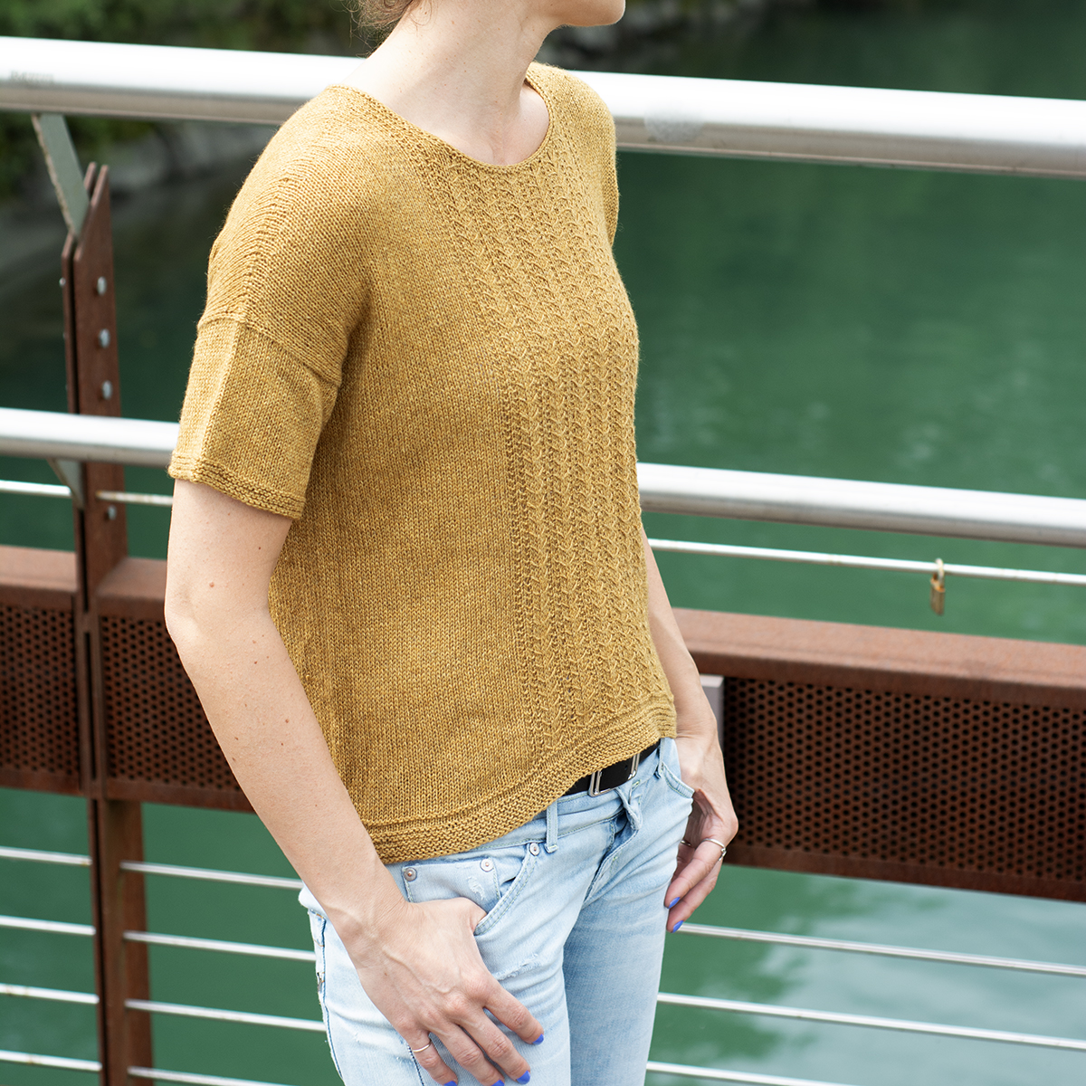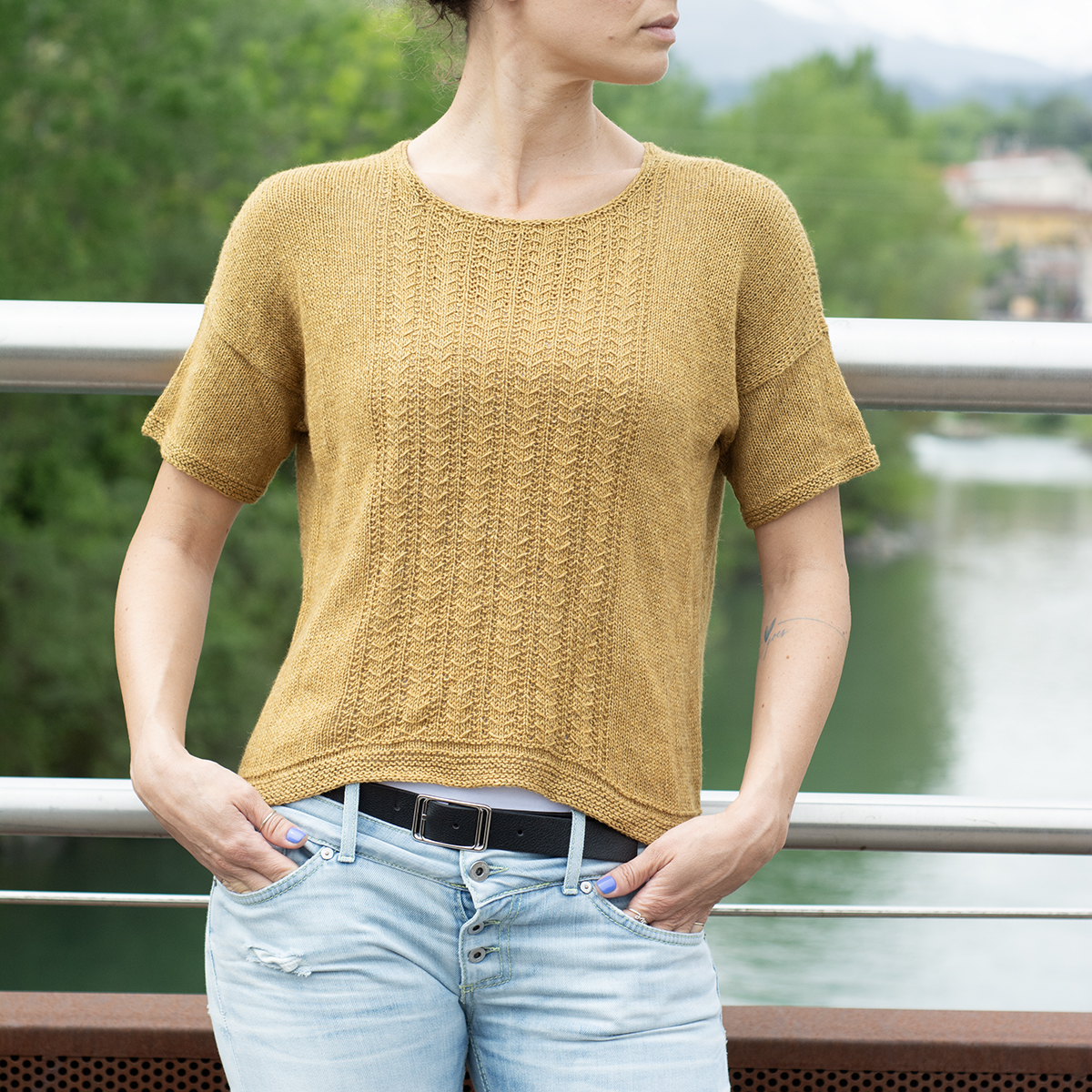 The Mia Cara Tee can also be knit in Baby Yak | Silk. Click here to get it.