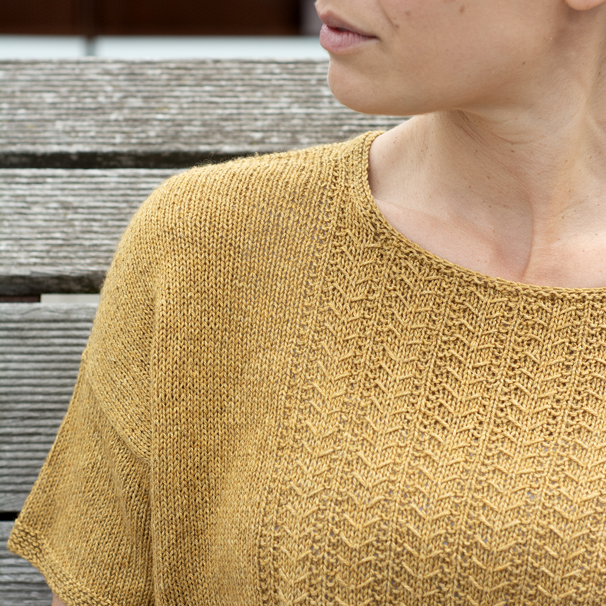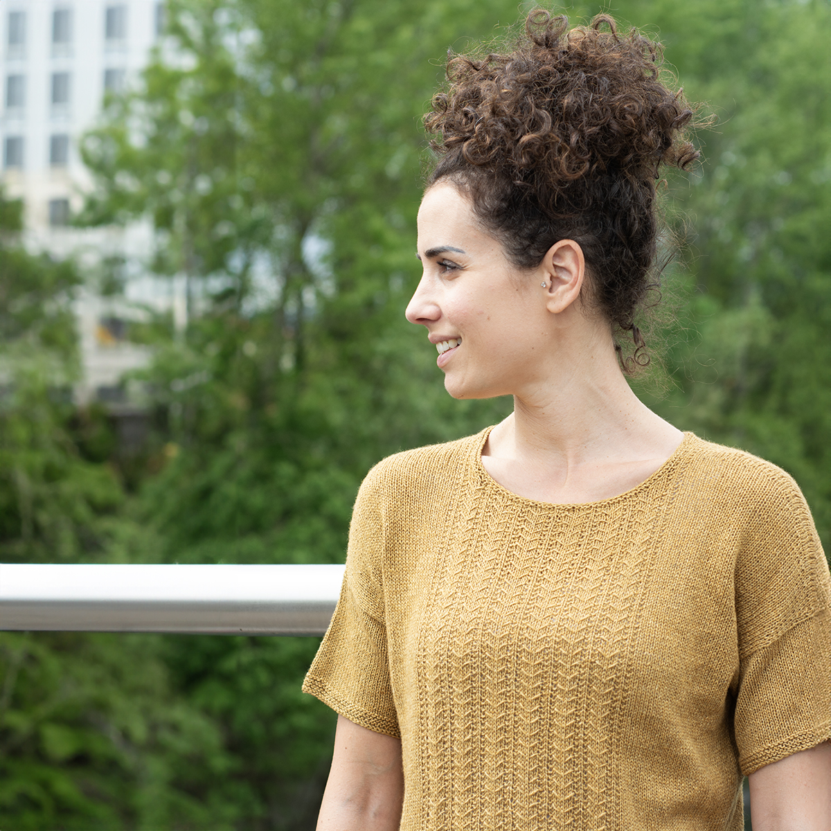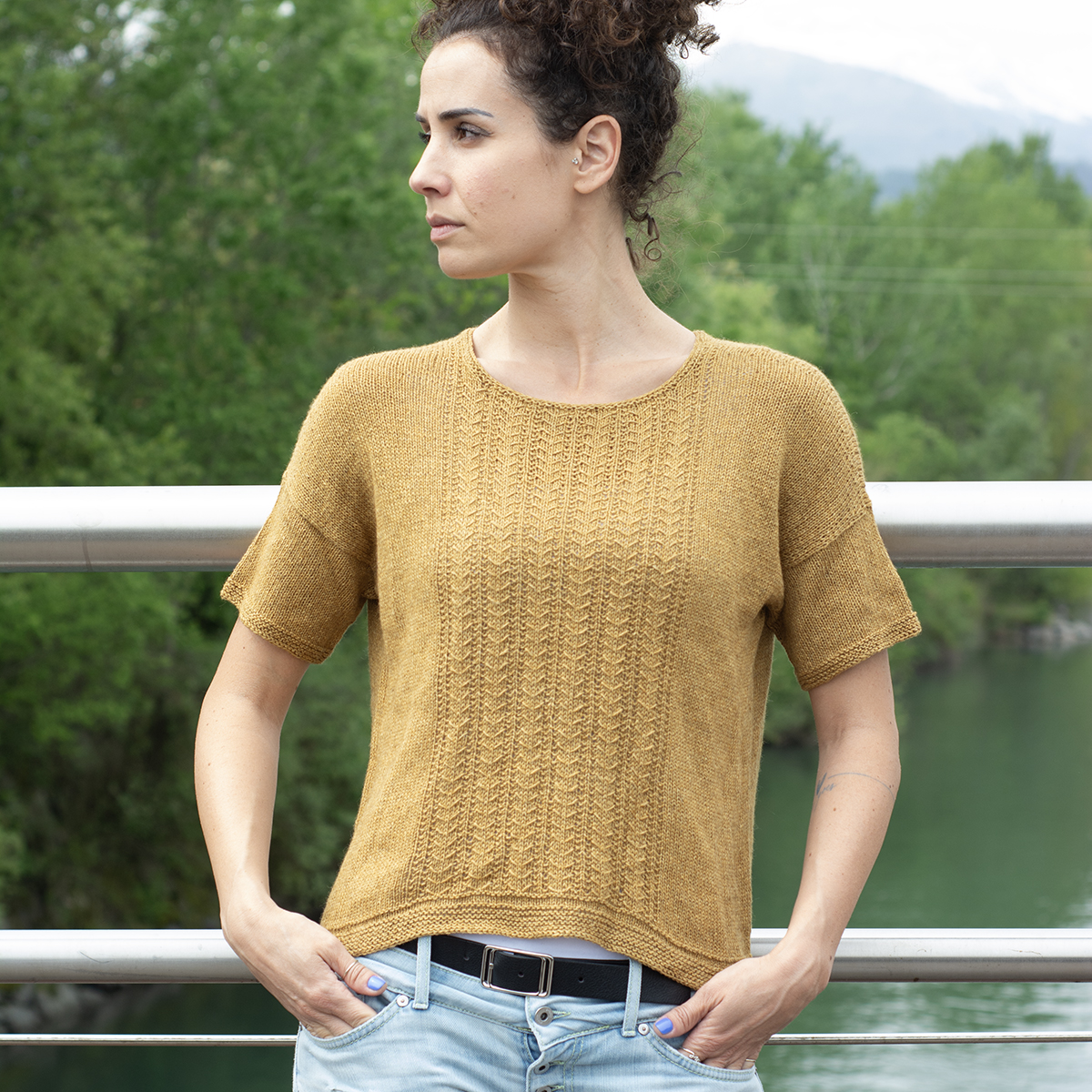 The Mia Cara Tee can also be knit in Baby Yak | Silk. Click here to get it.