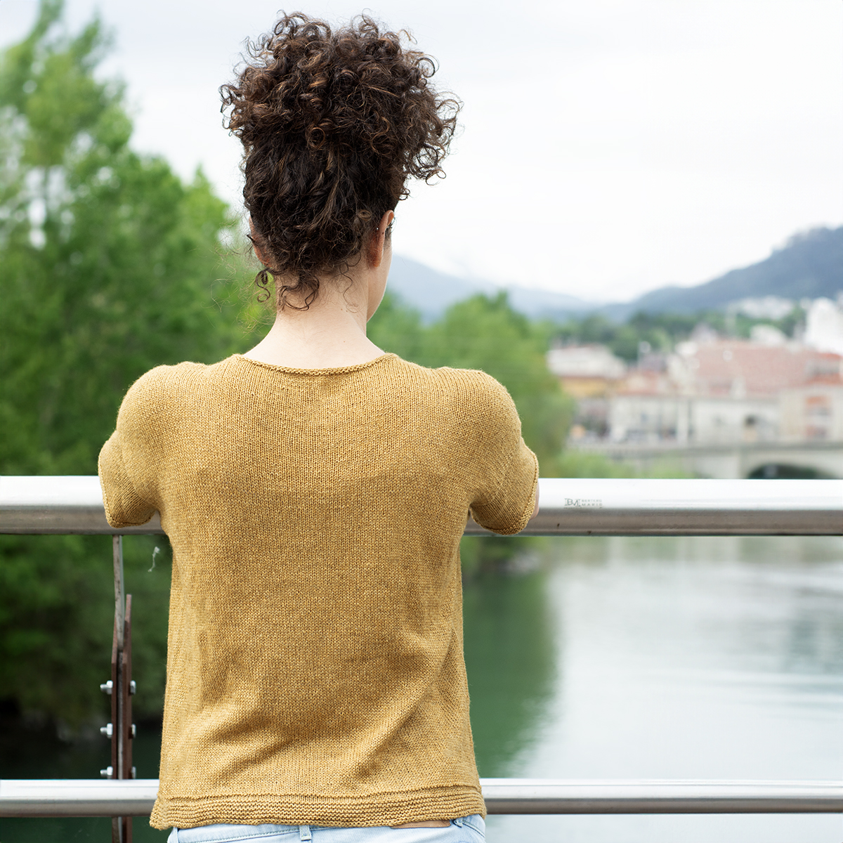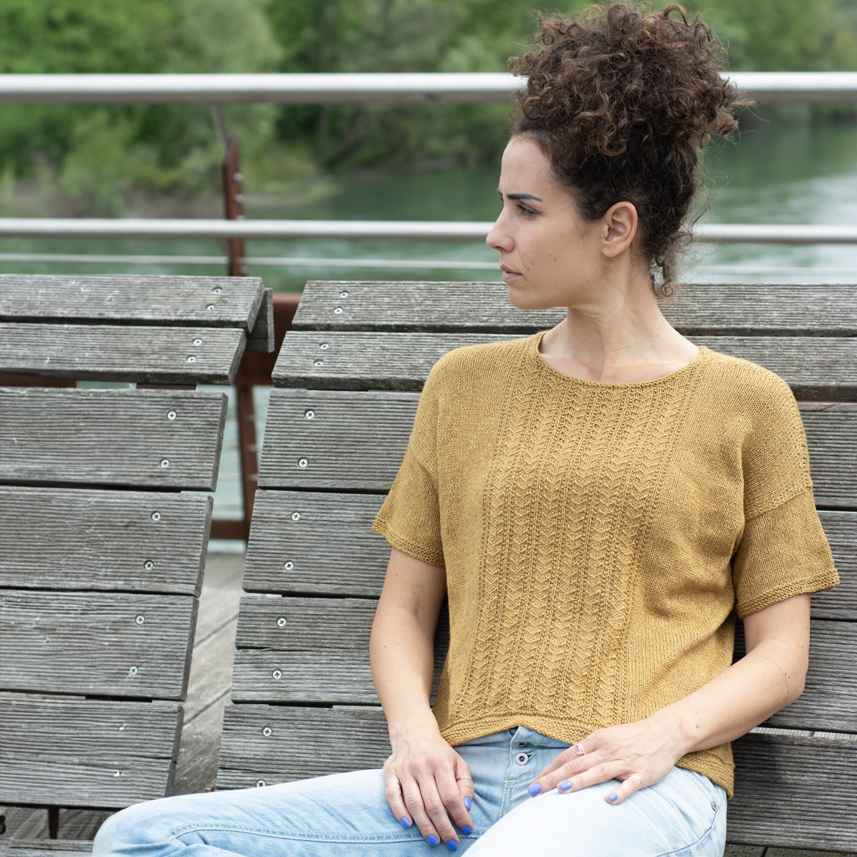 The Mia Cara tee is one of the exclusive pattern designed by Isabell Kraemer for the mYak Knitting Retreat in Murano 2024 . It is a lovely tribute to the beautiful landscapes of Italy. Inspired by the sun, it captures the essence of lazy days and mild evenings. We are grateful for this elegant accessory that’s perfect for warm weather.
