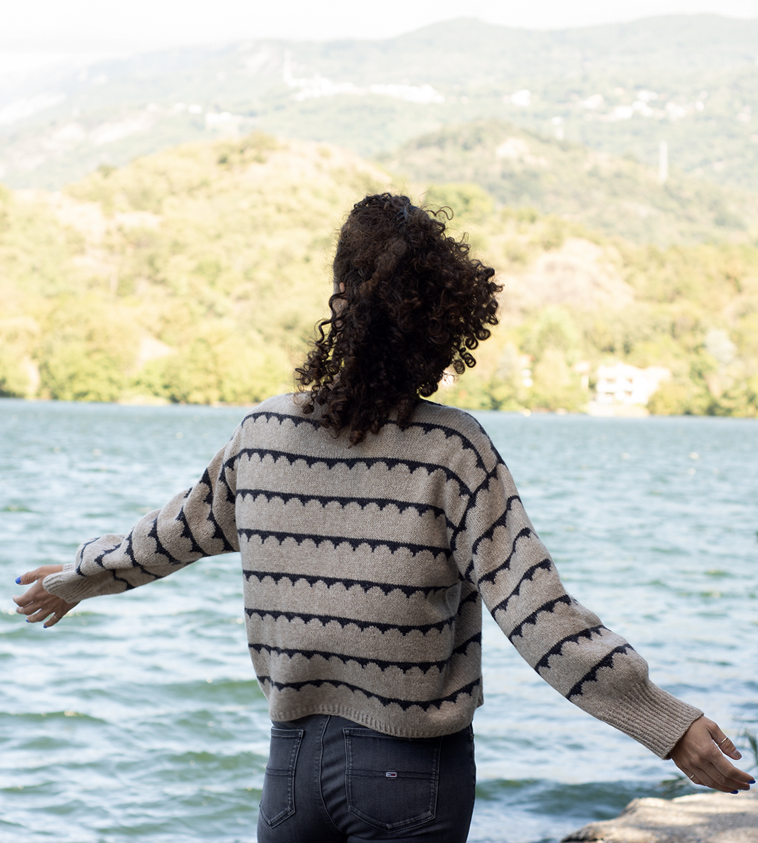 MONO SWEATER is worked in stockinette stitch and appears ‘almost’ like a uni-colored sweater.
