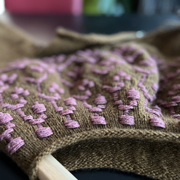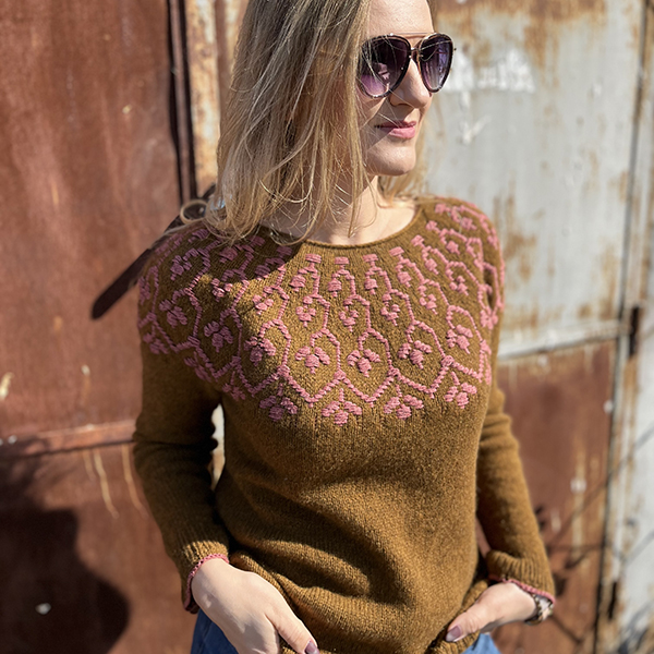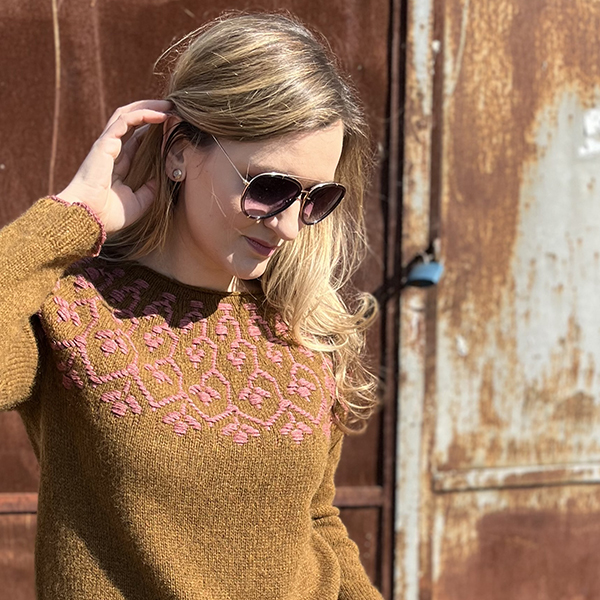 Nivalis is inspired by snowdrops, the first spring flowers coming from under the snow. The pullover is worked top-down in the round with a floral pattern around the yoke. The colourwork pattern can be worked as a simple stranded colourwork or as a more intricate pattern of floats.