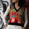 POPKNIT is knitted in pieces. The back is worked first shaping armholes and neckline. Then the front is worked shaping a V neck.