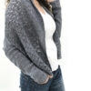 Shown in size S with approx. 1 in of positive ease at upper arm. Sizing note: This cardigan can fit a wide range of sizes. The biggest difference between the sizes is the sleeve circumference and the length from mid of upper arm to mid of upper arm.