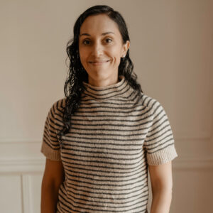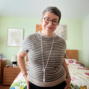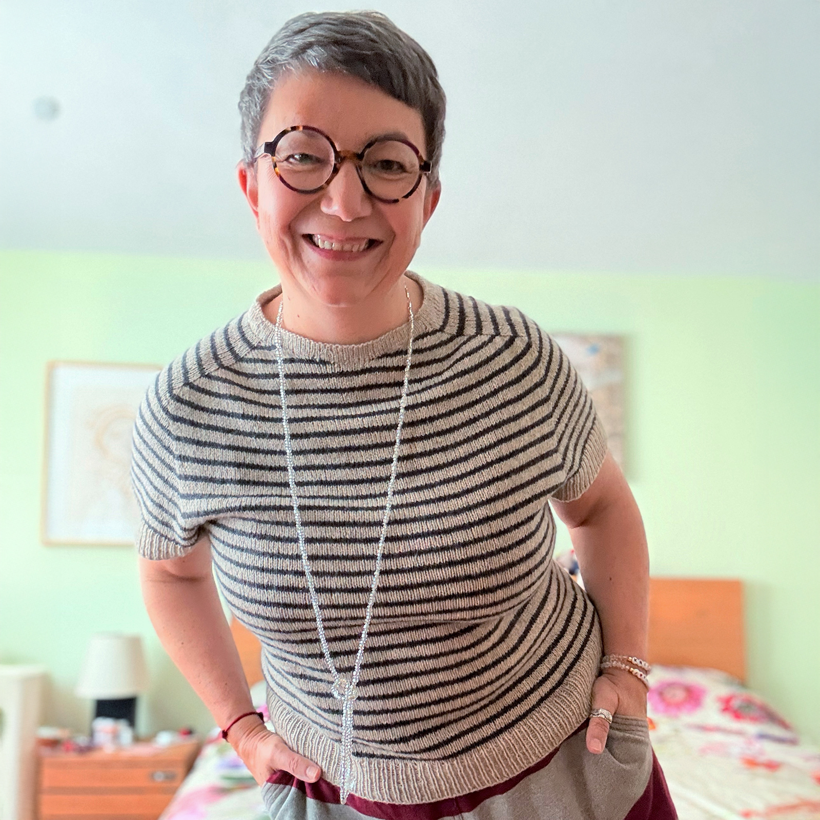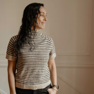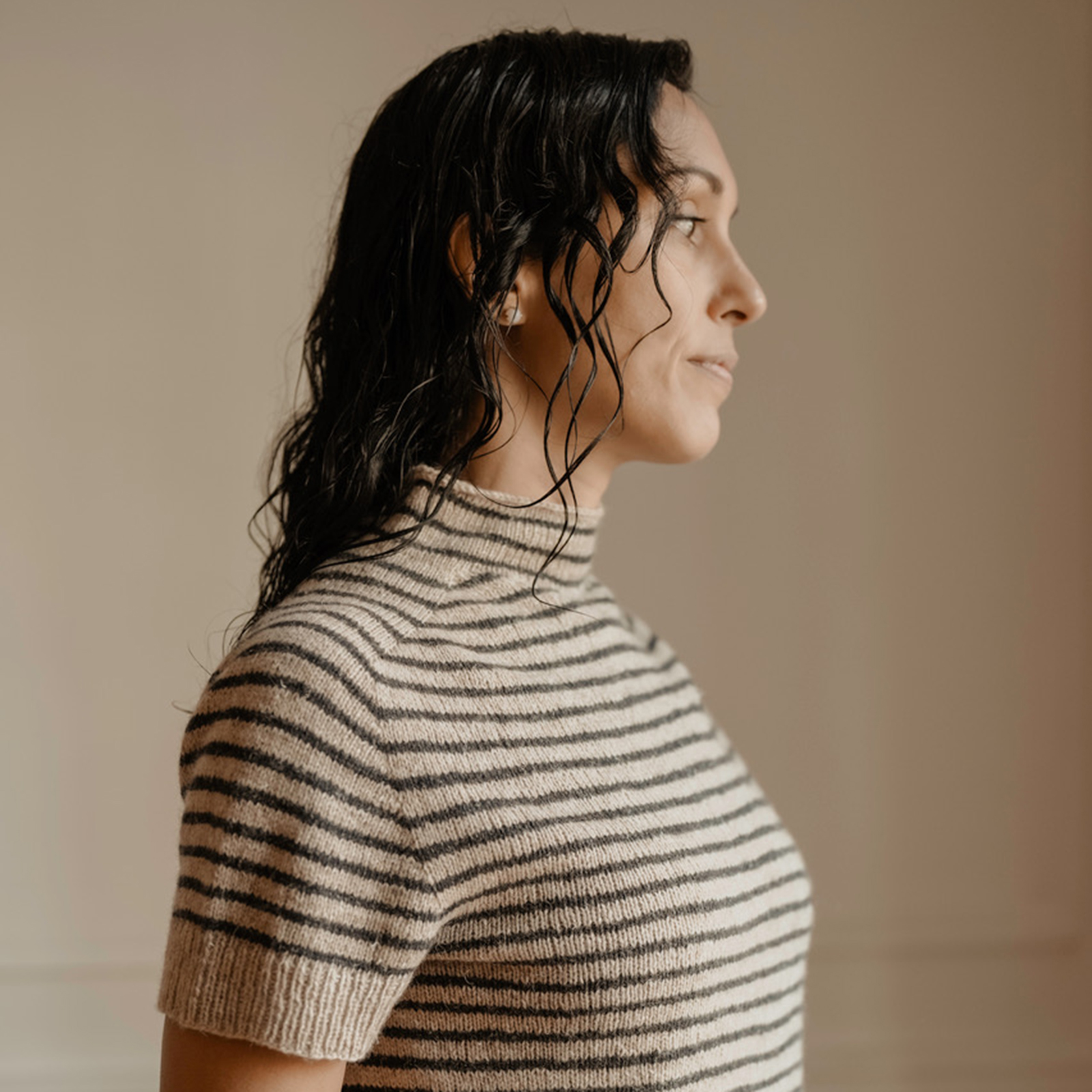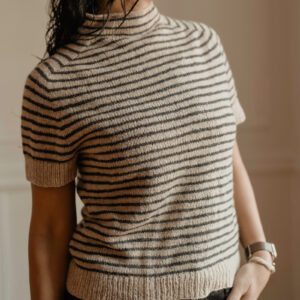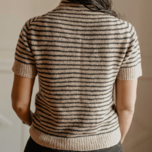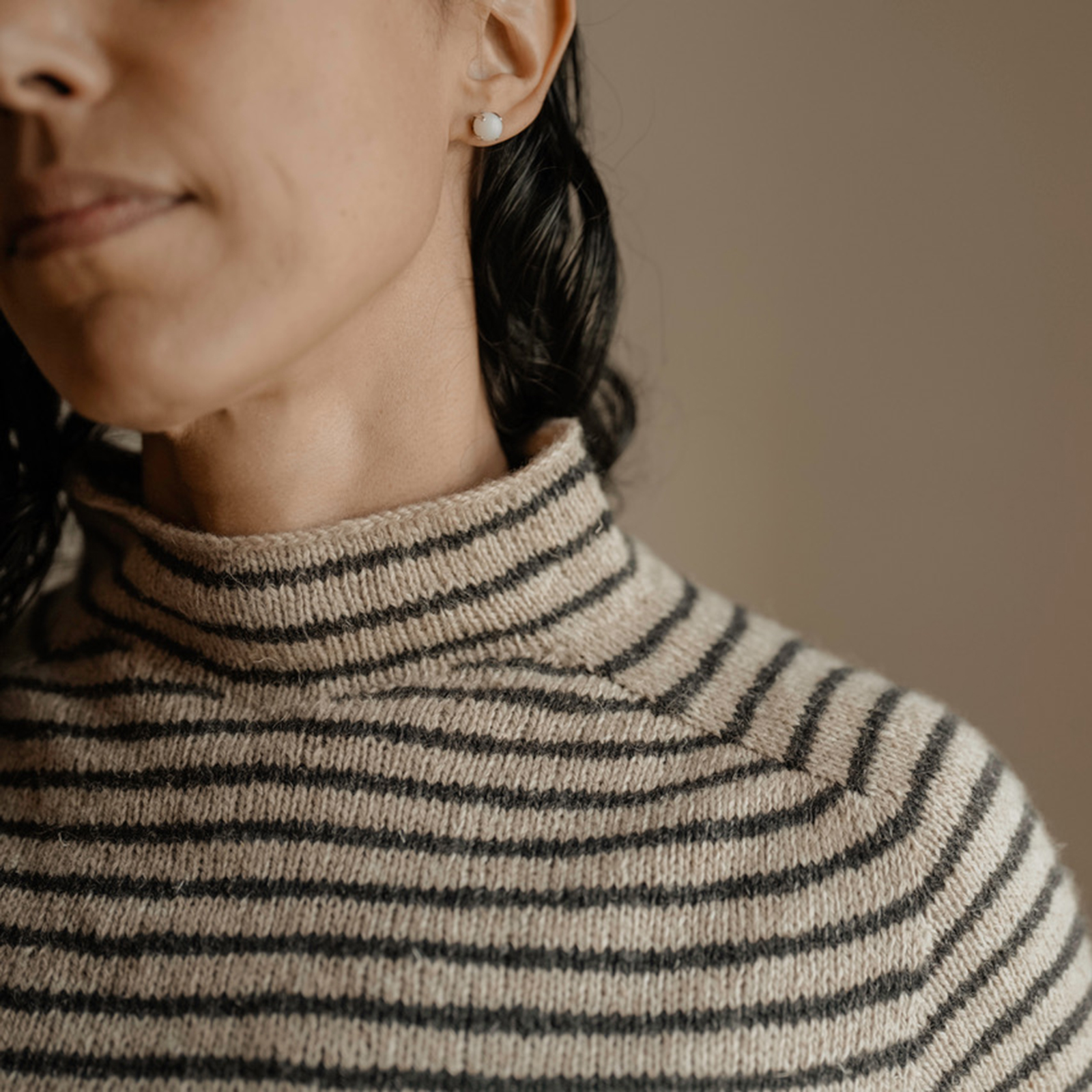Sepia Stripes is worked from the top down, seamlessly. The yoke and sleeves are carefully shaped with sets of increases for a timeless, saddle shoulder look.