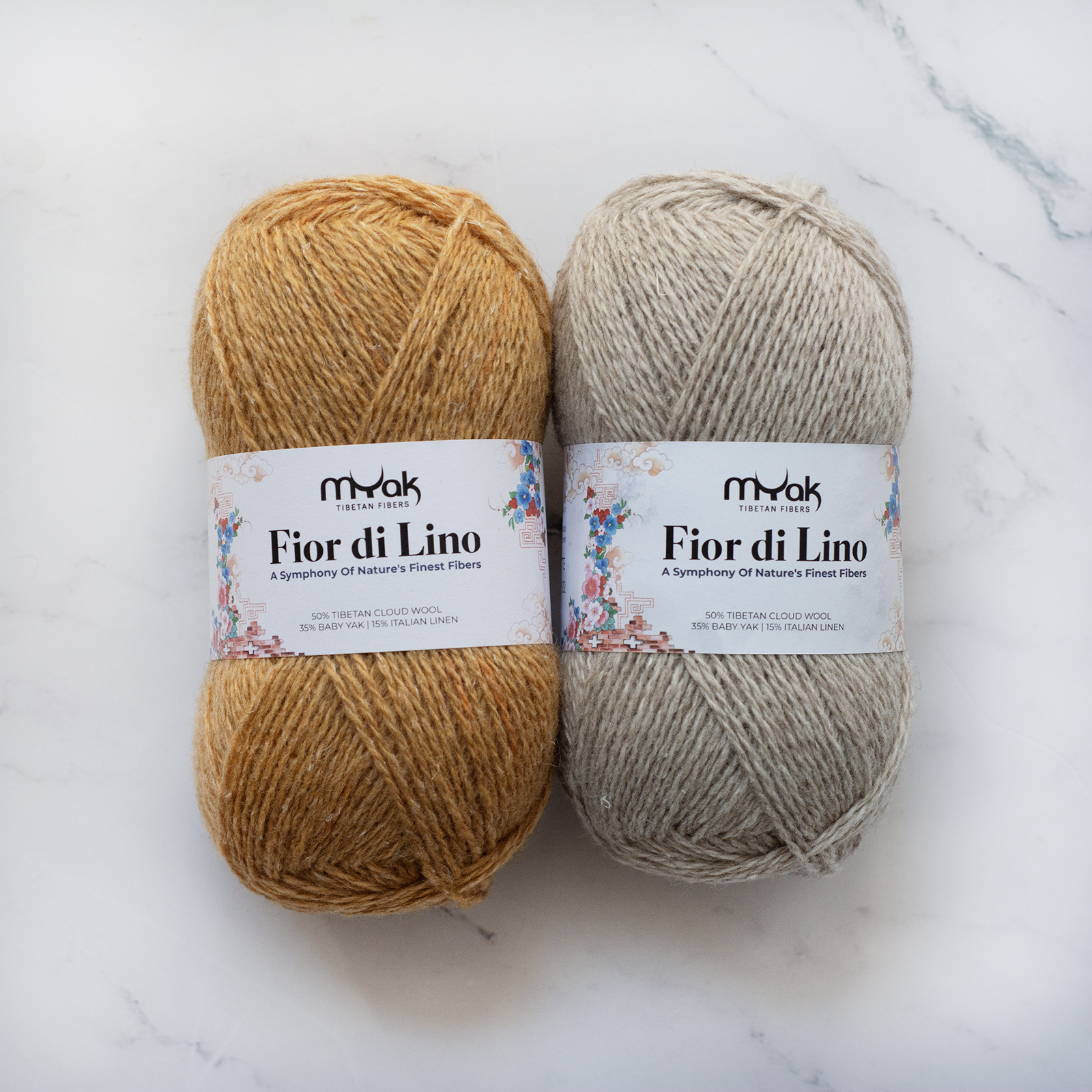 *Fior di Lino is a mesmerizing blend that marries the essence of Italian Linen, the ethereal softness of Baby Yak, and the richness of Tibetan wool. This fingering weight yarn, meticulously crafted with 15% Italian Linen, 35% Baby Yak and 50% Tibetan Cloud, weaves together the verdant beauty of Italian landscapes, the tranquil vastness of the Tibetan Plateau, and the everlasting grace of nature’s allure.