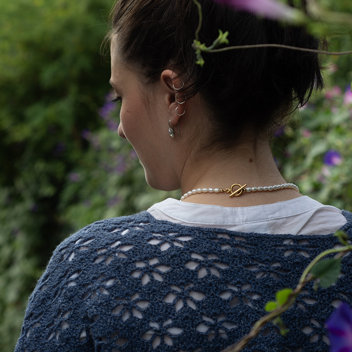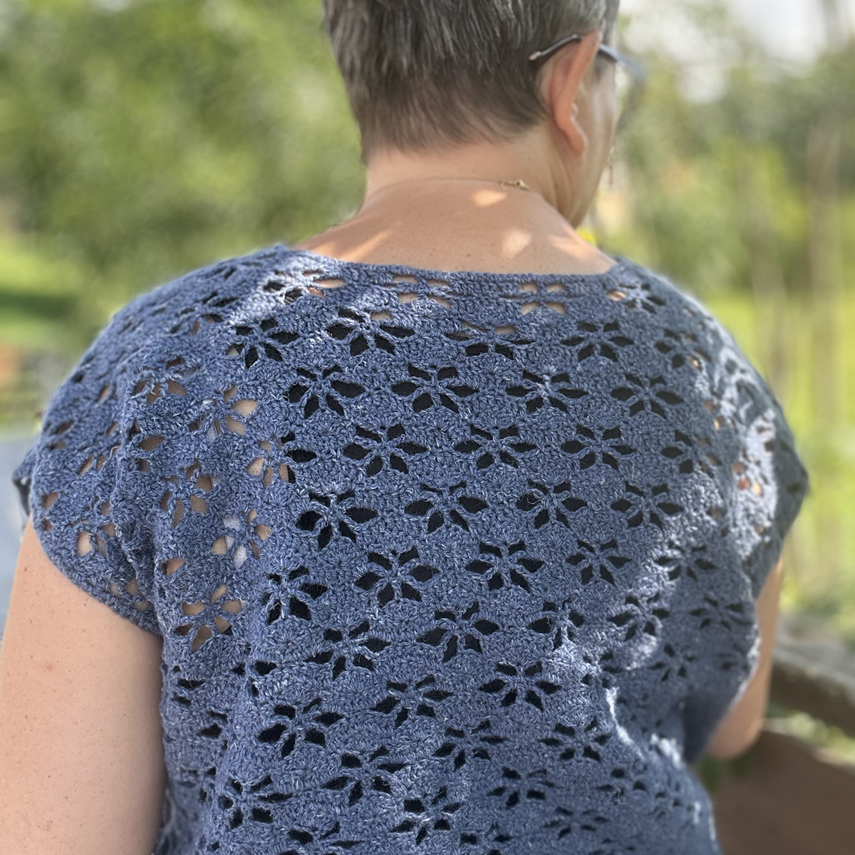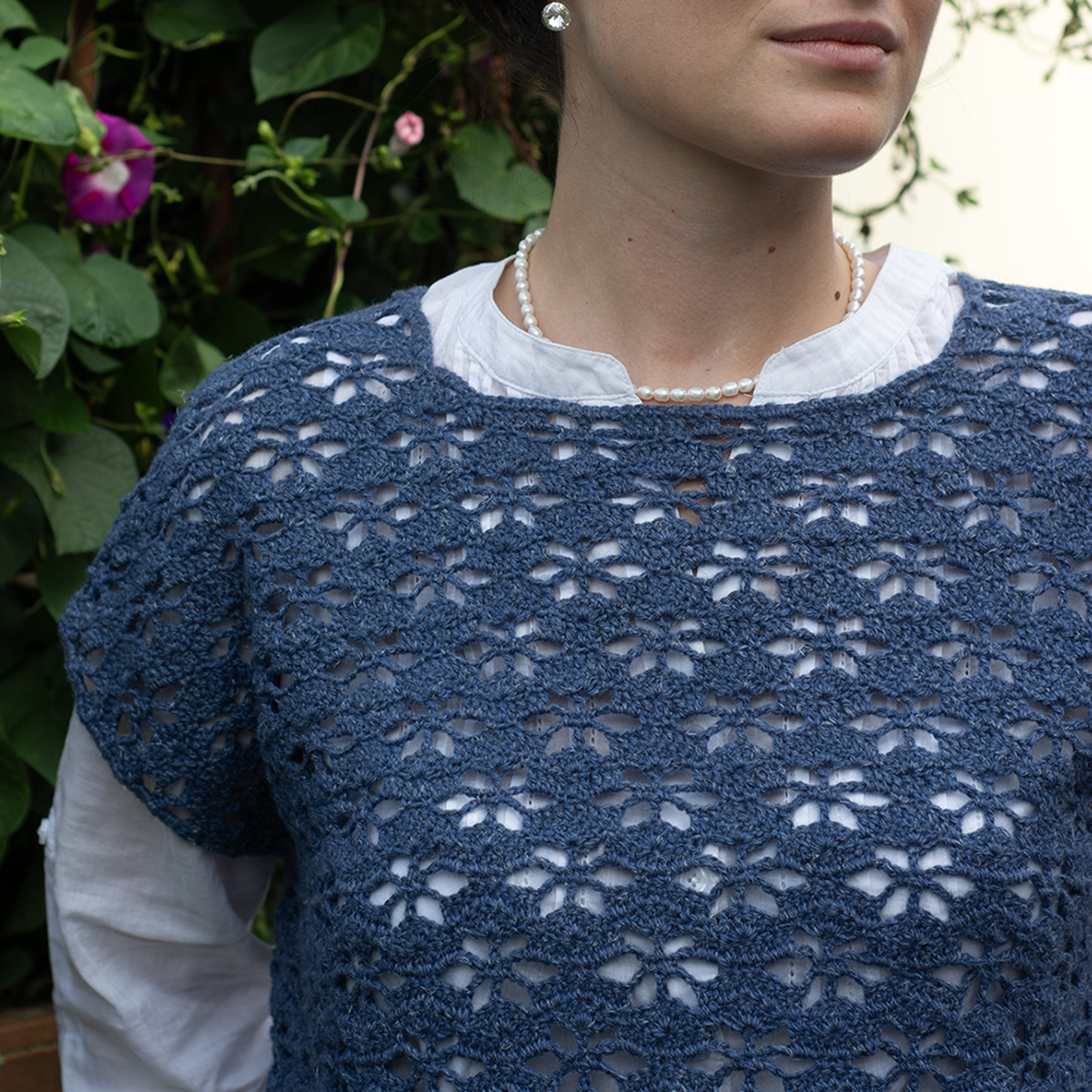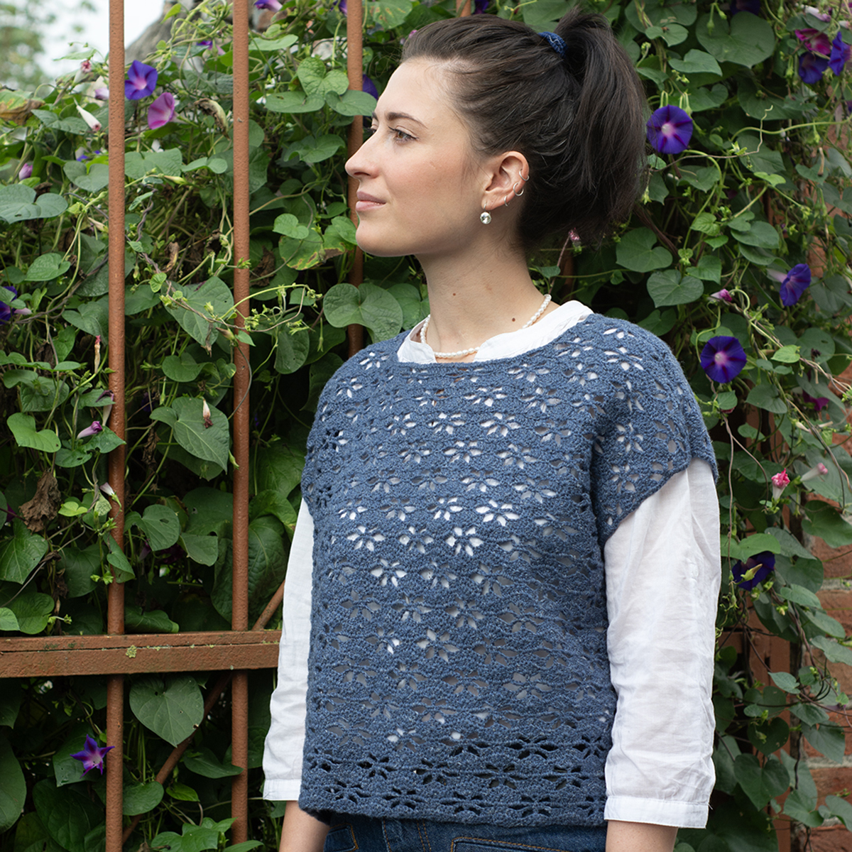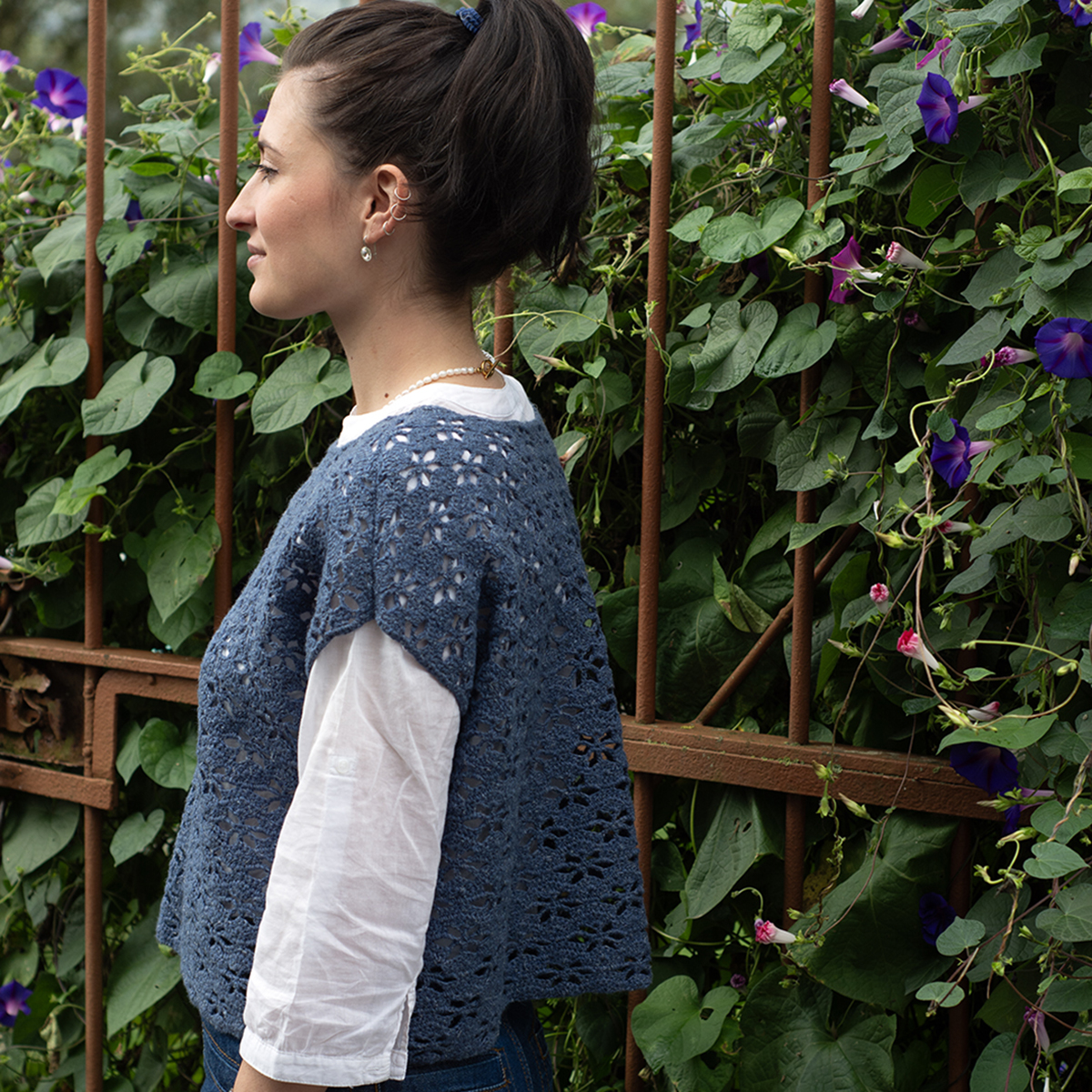 mYak’s Fior di Lino blend is the absolute game-changer for crochet garments. Trust us, this yarn isn’t just a knitting superstar. It’s got the softness, drape, and that perfect amount of structure you want in a crochet top. And can we talk about the color? We’re using the Denim shade, and it’s exactly what we were was looking for to crochet the Water Clover. It’s like it was made for this pattern!