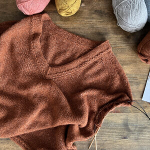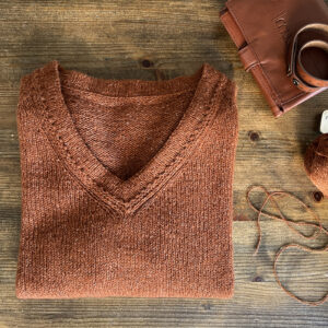 US 2 1/2 (3 mm) 16” (40 cm) and 32” (80 cm) circular needle and DPNs (or preferred needle to work small circumferences) for inner body hem, inner V-neck finishing and inner sleeve cuffs.