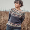 Zyma Sweater is a round yoke colorwork pullover. It’s knitted from the top down, so you can try it on as you knit, to achieve the perfect fit. It’s adorned with fun, matching motifs – on the yoke, the body and sleeves. Designed and knitted with mYak Baby Yak medium, it knits up fast so you can enjoy the softness and warmth of the fibers in no time!