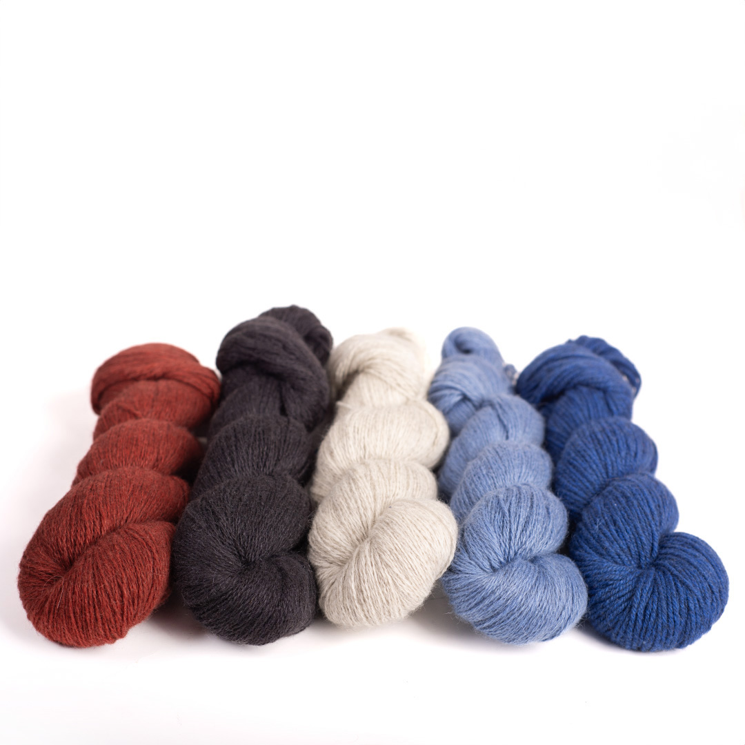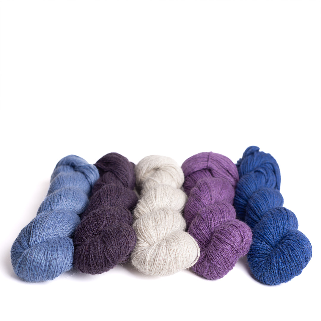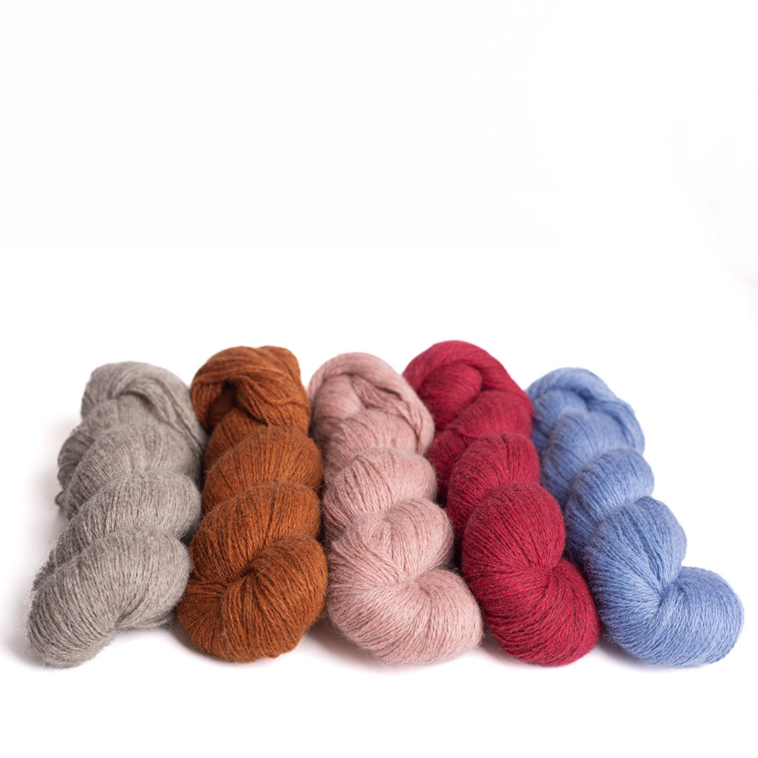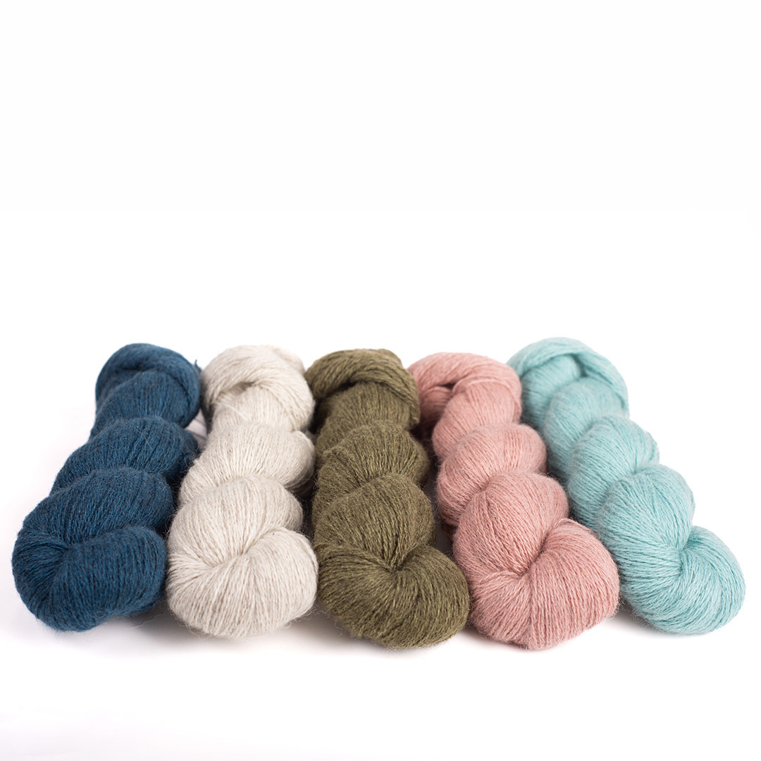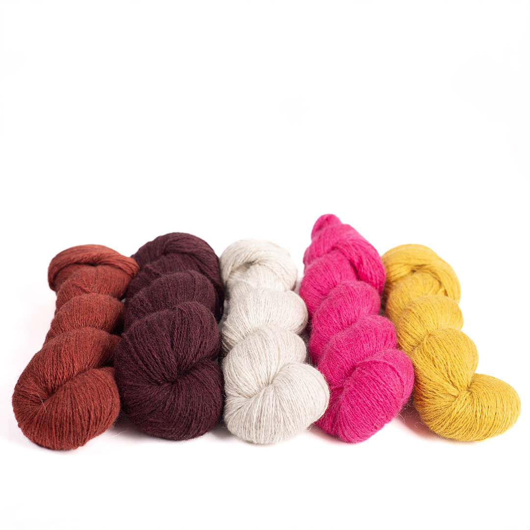 Puoi anche creare la tua combinazione di colori personalizzata scegliendo i gomitoli in pizzo Baby Yak e pizzo Tibetan Cashmere .