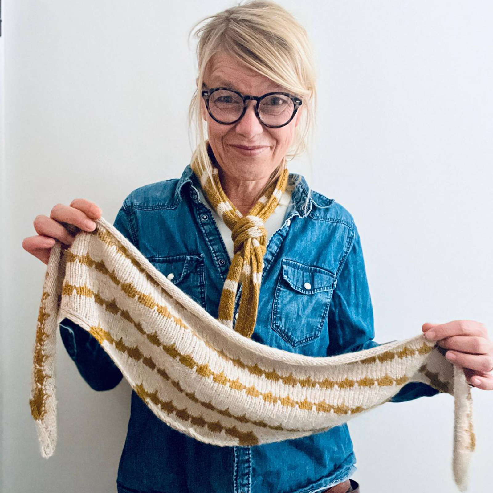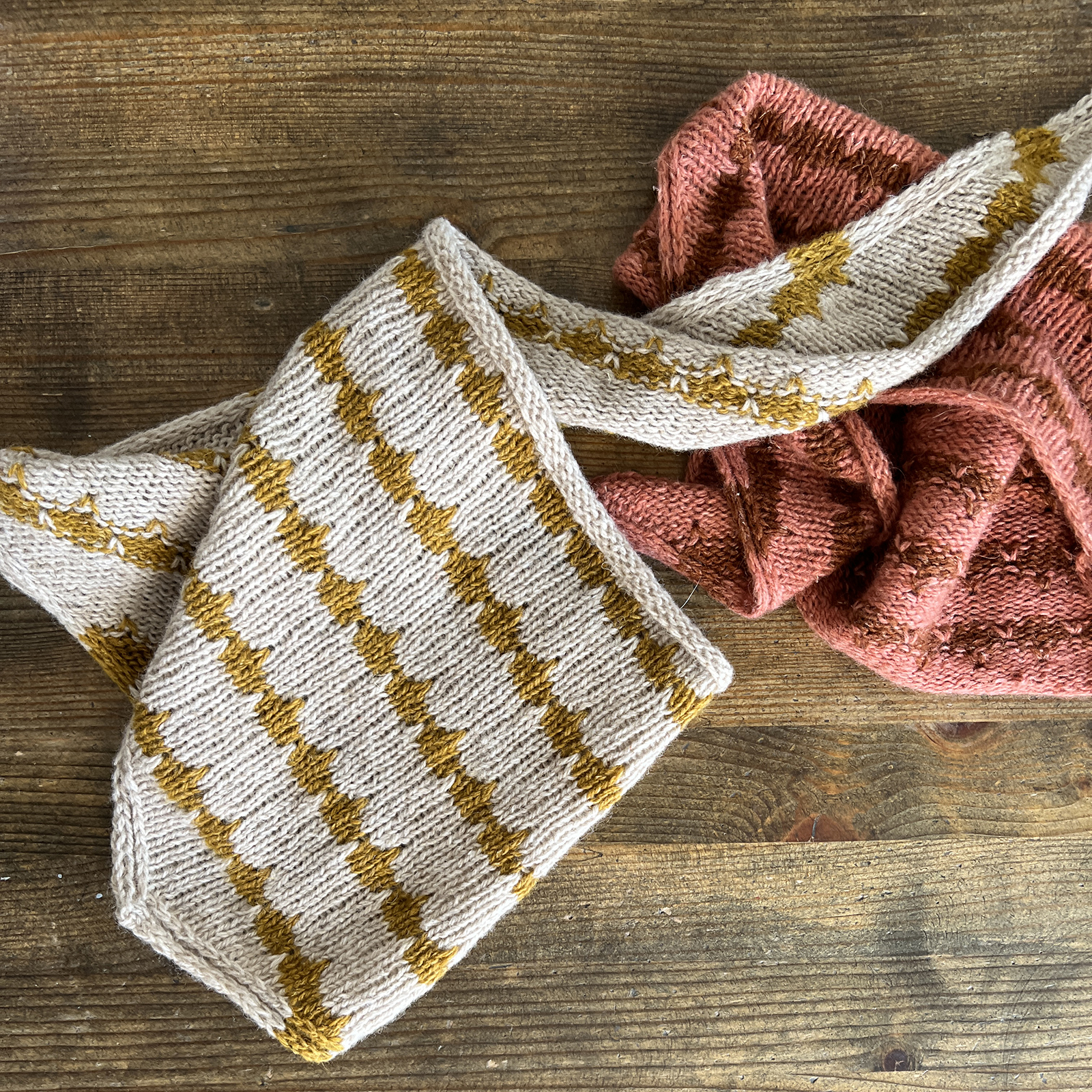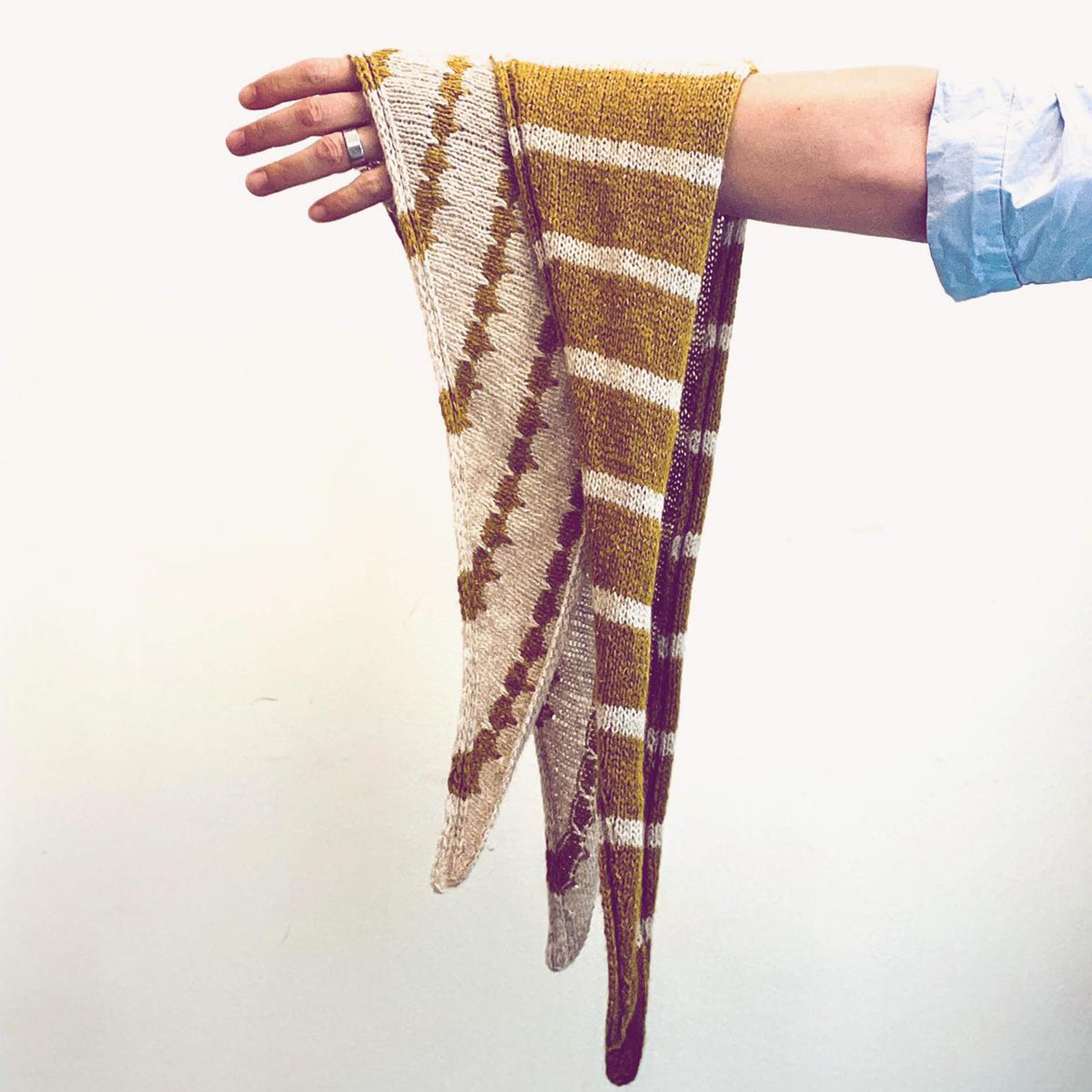 Clyde is worked sideways from tip to tip, increasing stitches at one edge until the final (desired) width is reached, then decreasing stitches at the same edge until the very last stitches are on your needle. An easy and beautiful stripe pattern adds interest and makes knitting Clyde a fun and beginner friendly experience.