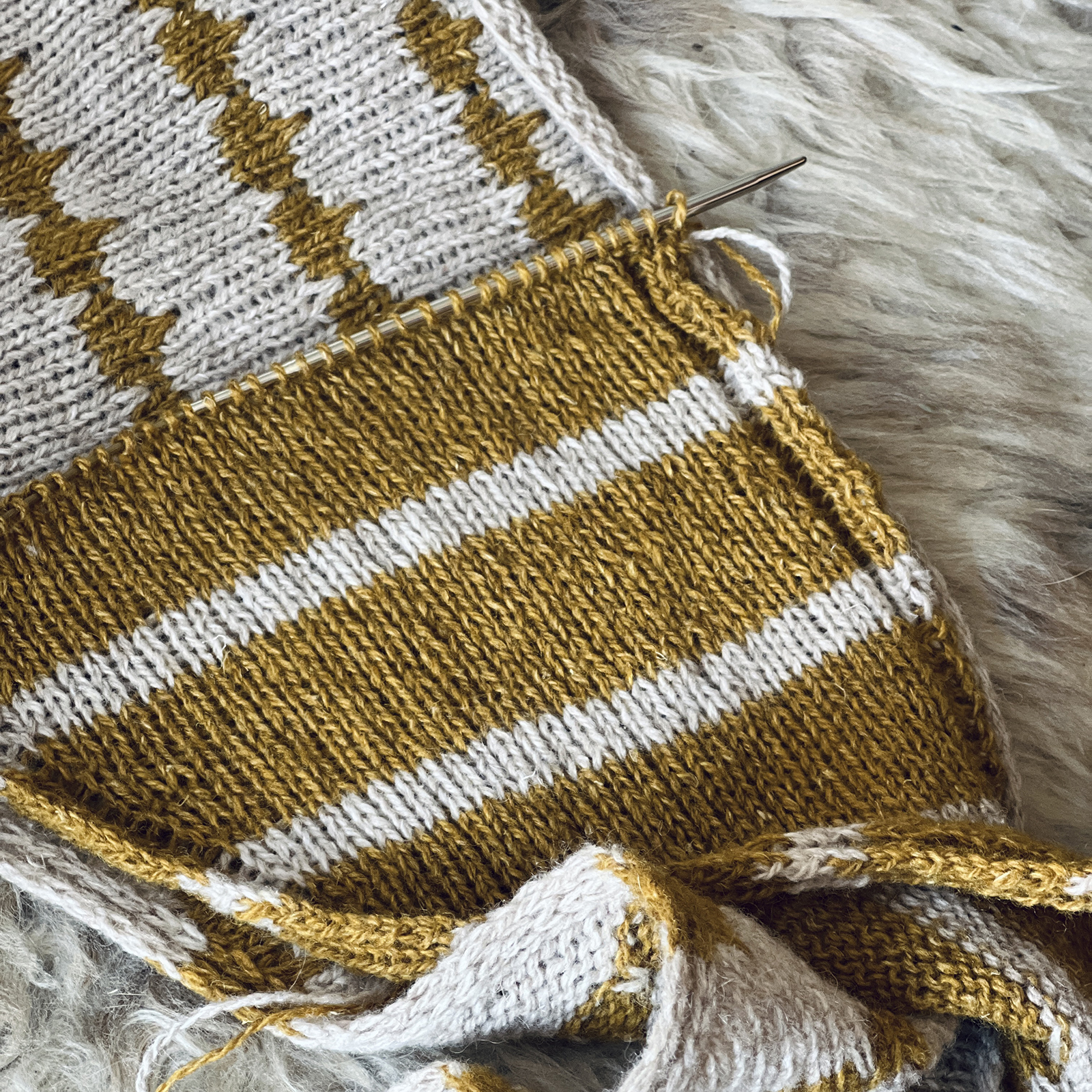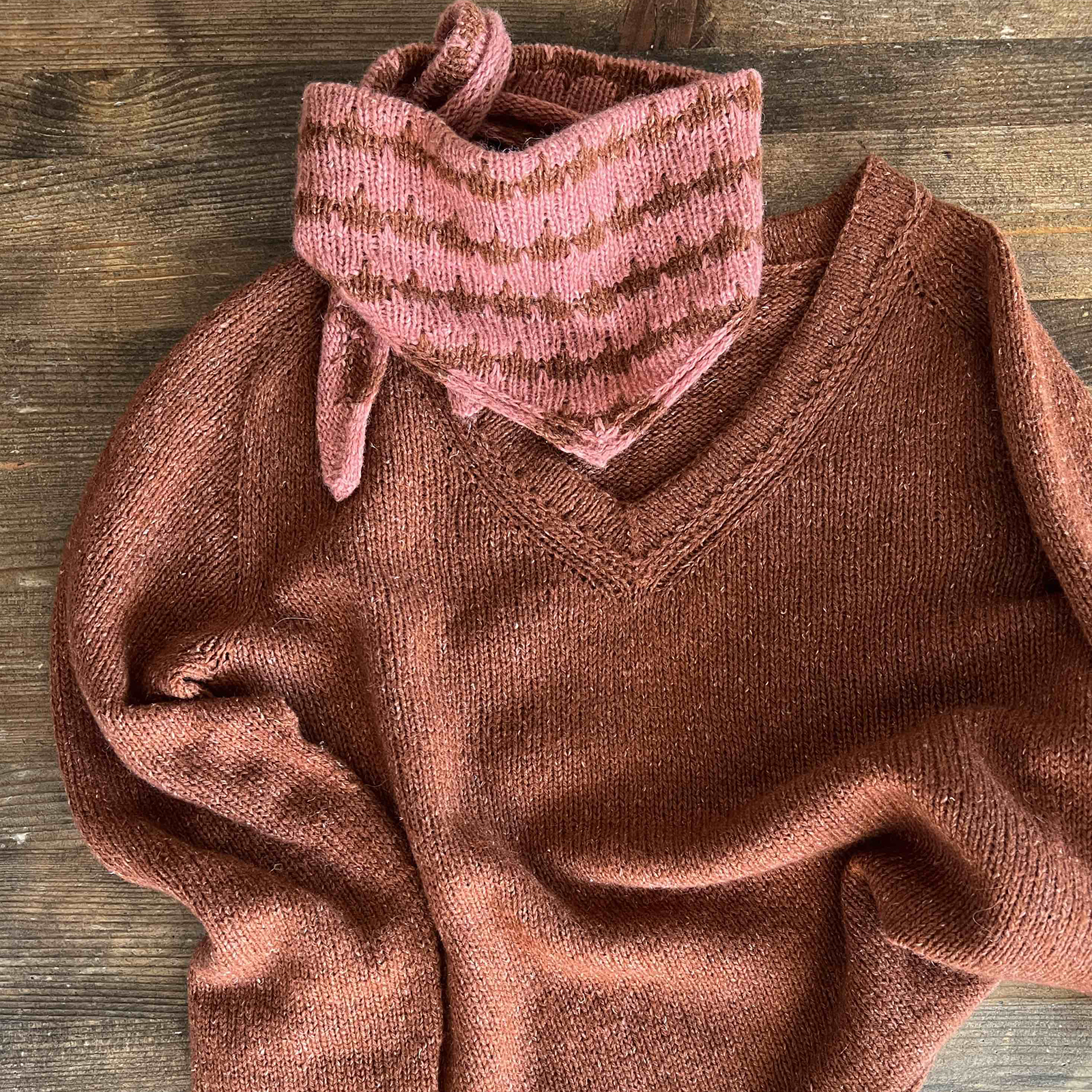 Bonnie is worked from the top down and features the beautiful and fun stitch pattern I used for the HEIMATHAFEN pullover.