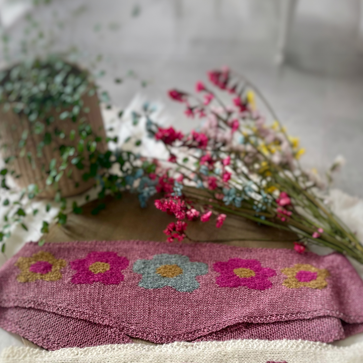 It is a lovely small scarf full of flowers that will help you learn the amazing Intarsia technique or have fun knitting it if you are an Intarsia lover! It’s a great accessory that can be knitted very fast, it is amusive and can be a perfect gift! Give your scarf the elegance that needs playing with many different colors. Do not hesitate to play even with yarn qualities: Baby Yak | Silk has a lovely shine when Tibetan Cloud has an incredible softness! Or maybe you want to knit them both!