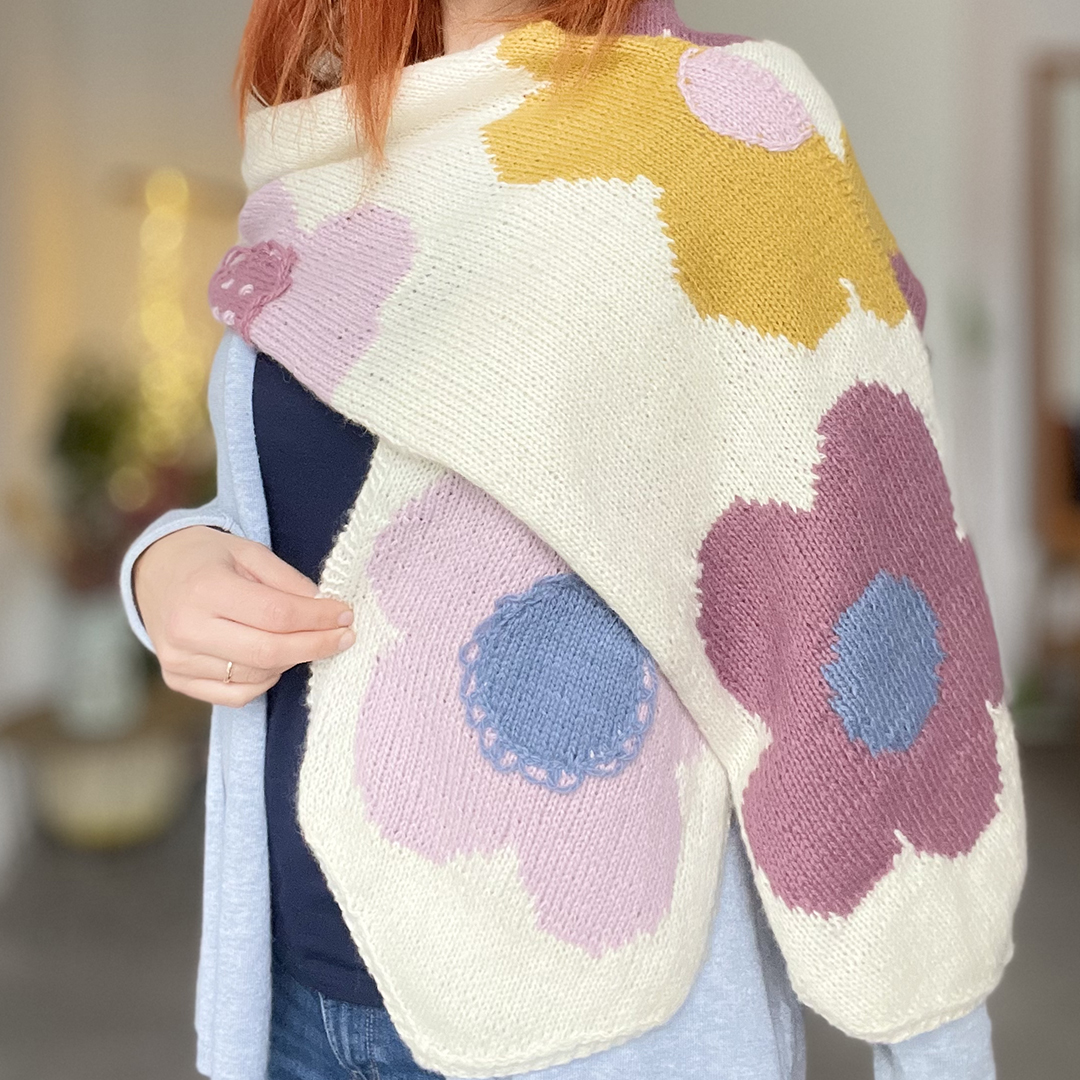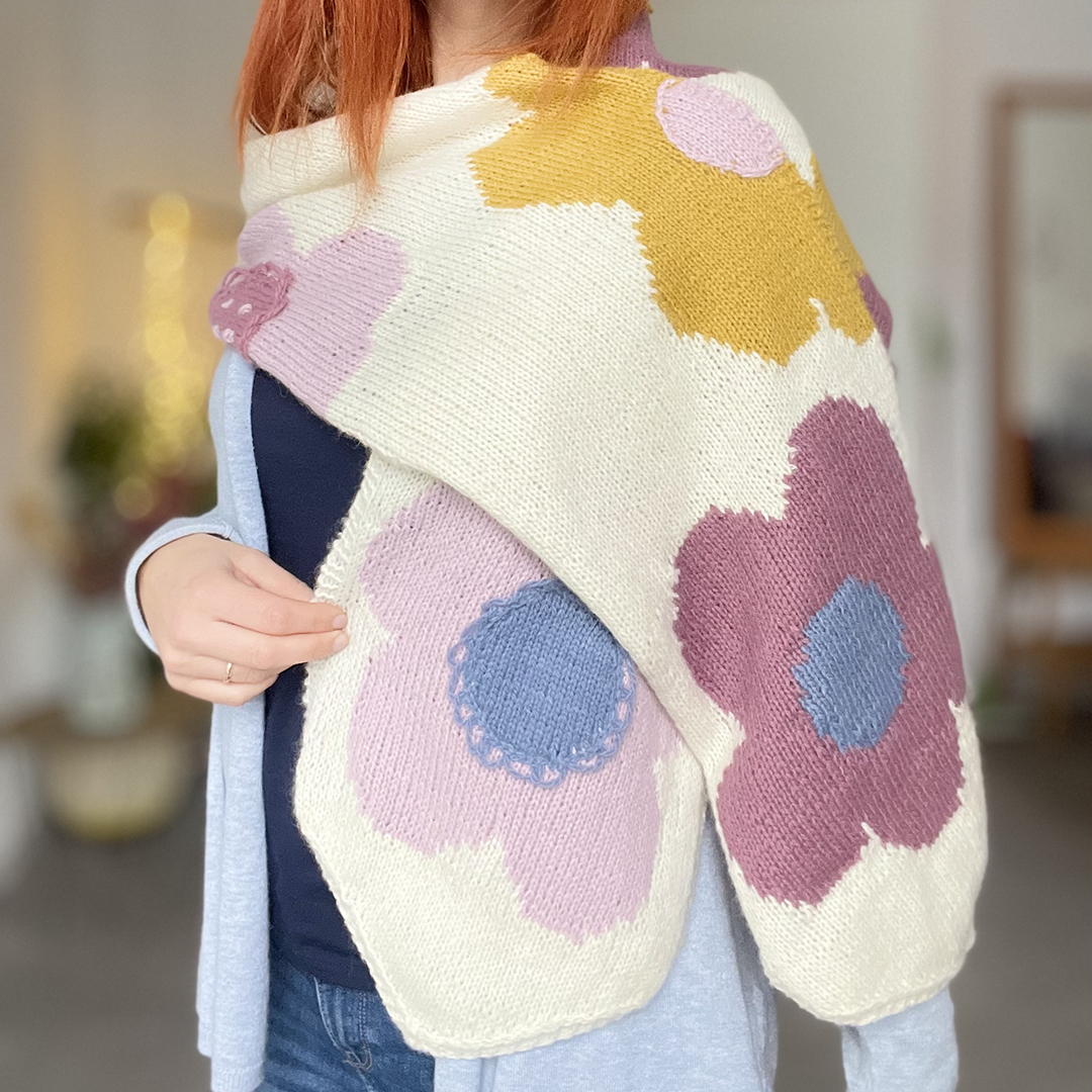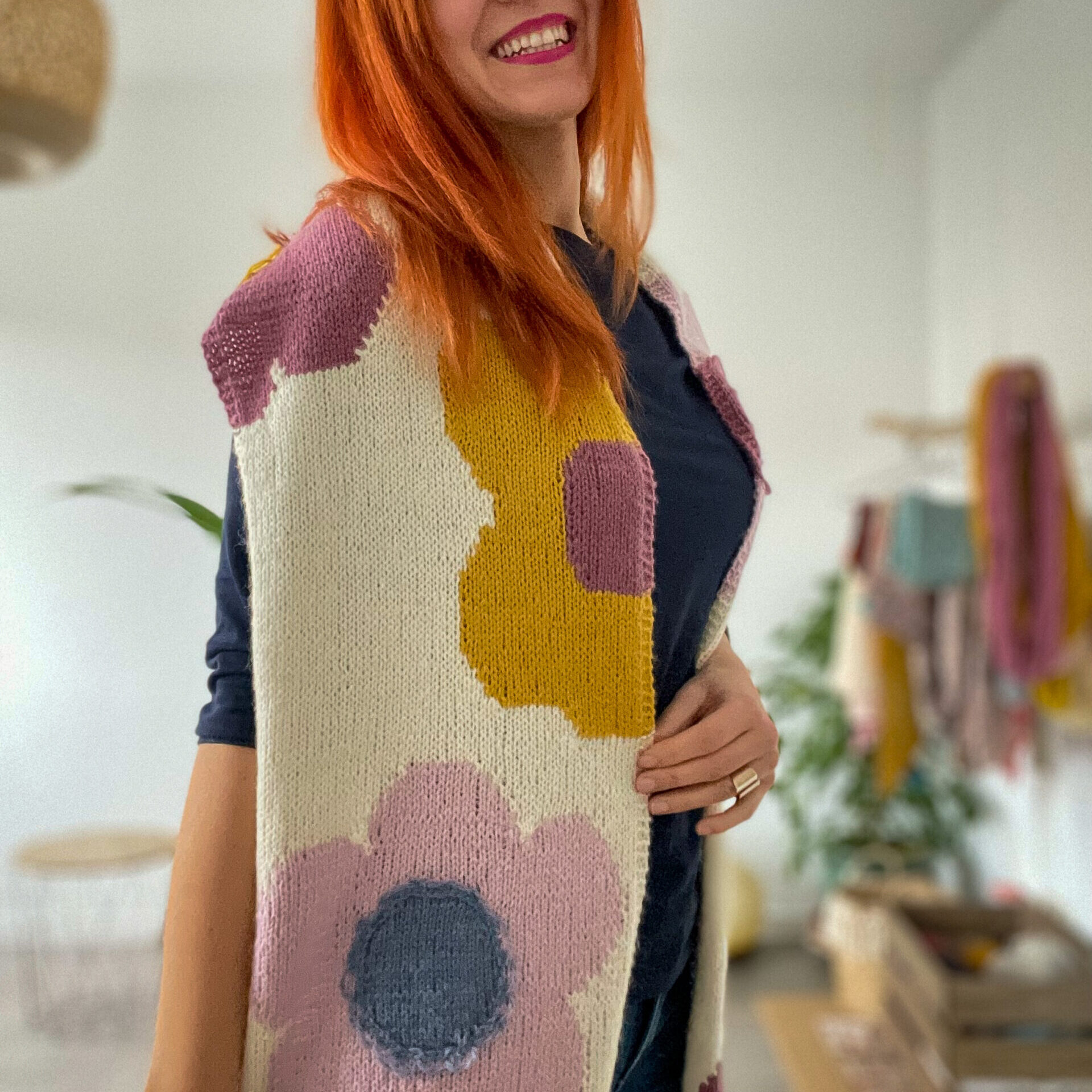 Dancing Flora is a lovely long scarf full of flowers! The amazing colors of the Tibetan Cloud give the scarf the elegance that it needs! You can play with as many colors as you want and also play with the length of the scarf!