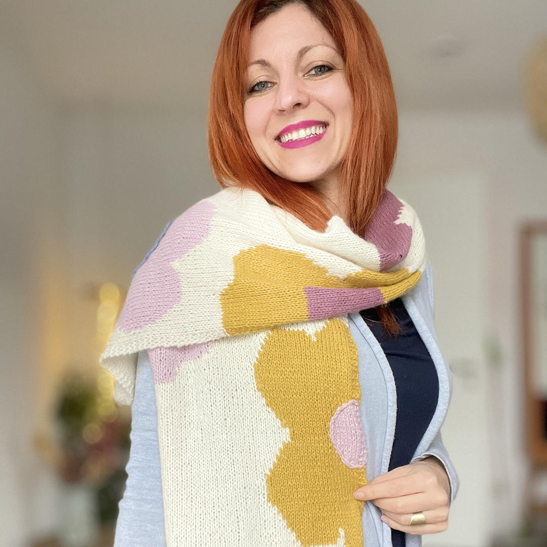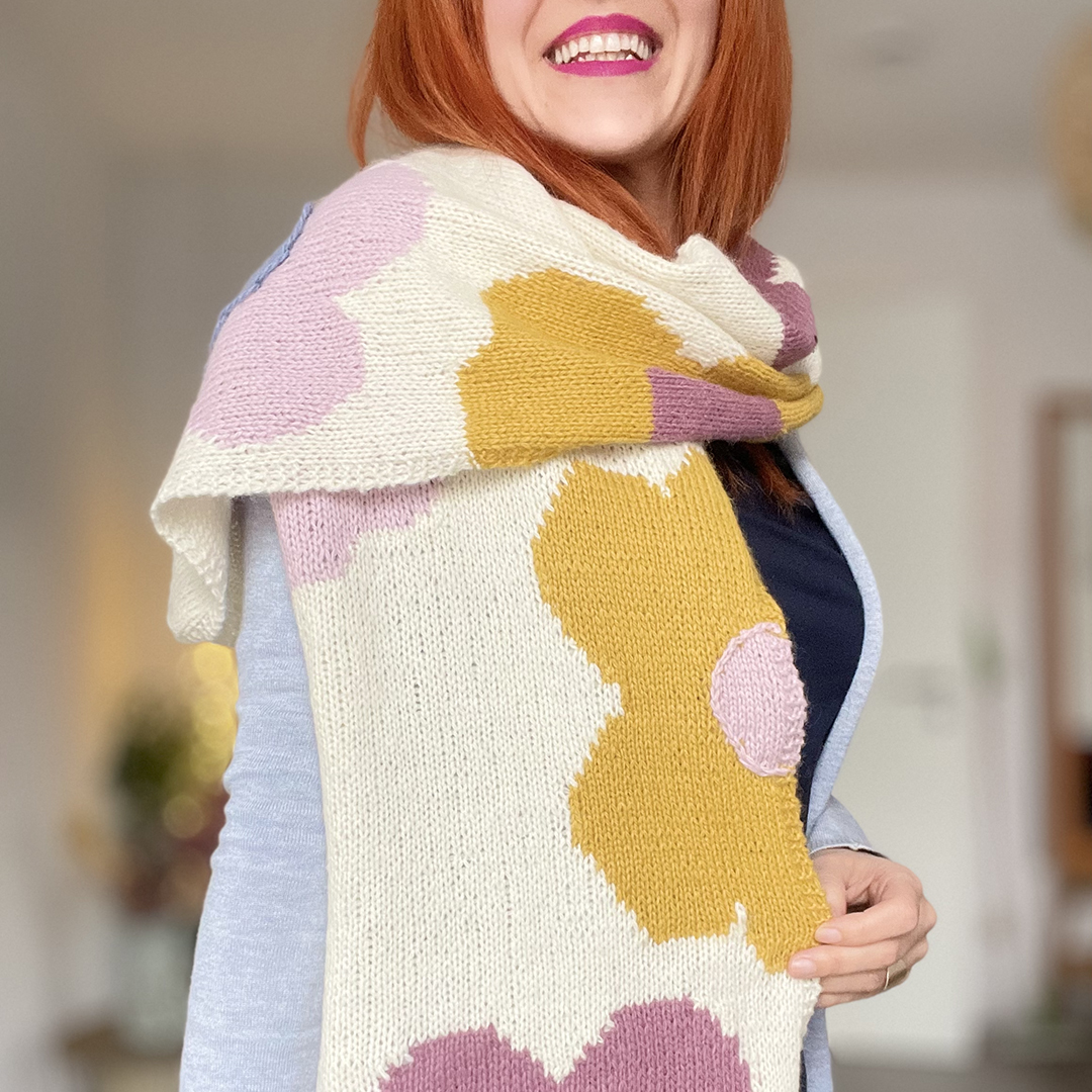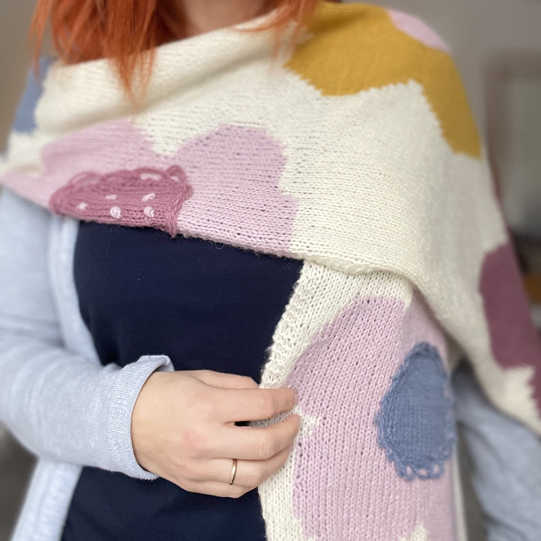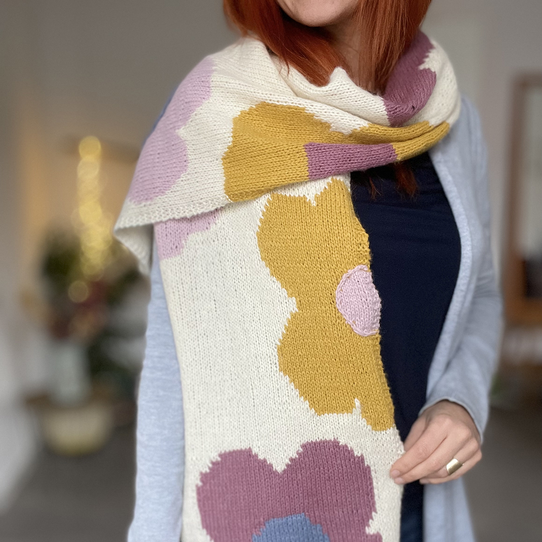 Dancing Flora is a lovely long scarf full of flowers! The amazing colors of the Tibetan Cloud give the scarf the elegance that it needs! You can play with as many colors as you want and also play with the length of the scarf!