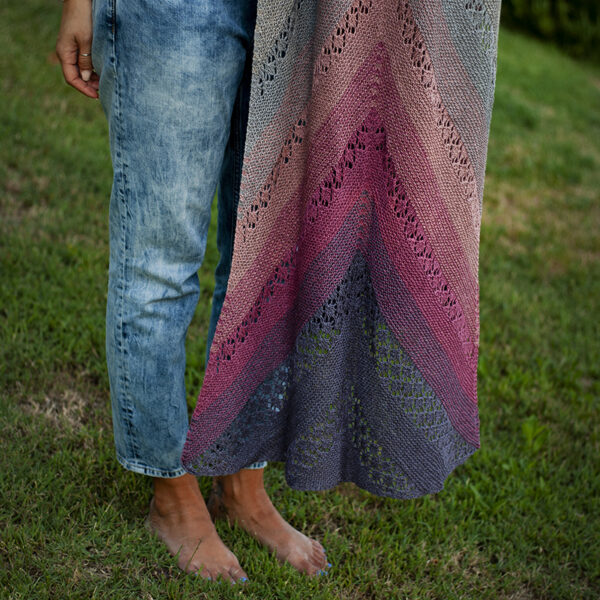 The pattern is completely different than its predecesor: It has sections where you blend 2 colors together and then sections with lace. The instructions are WRITTEN AND CHARTED.