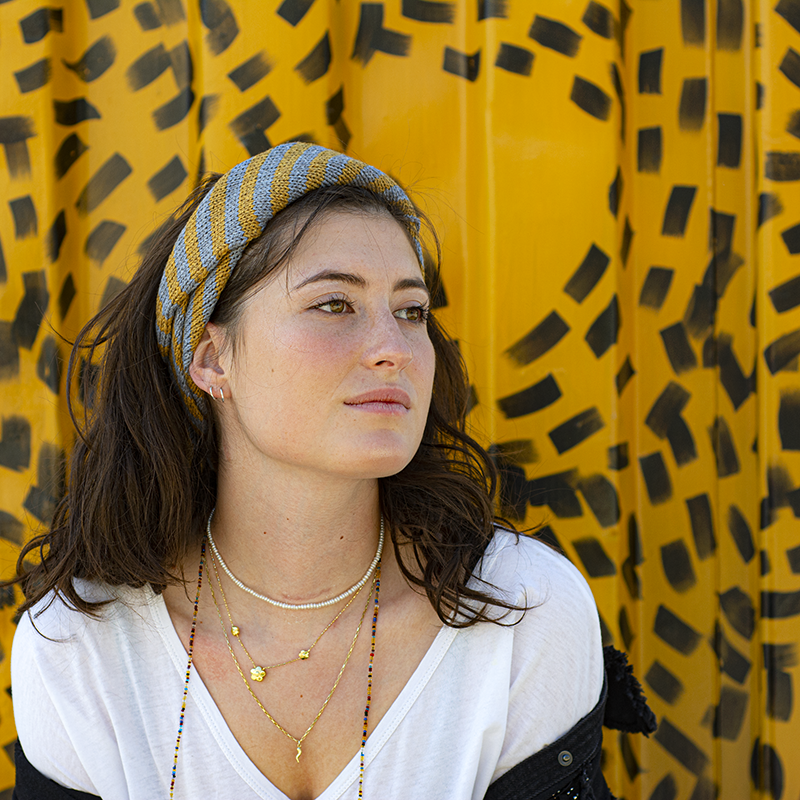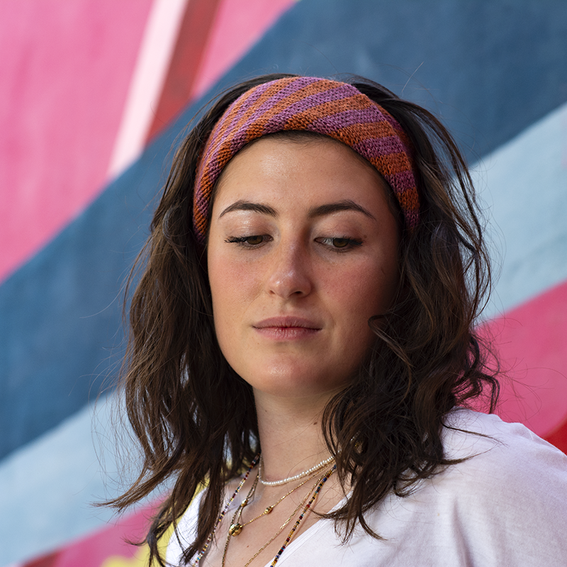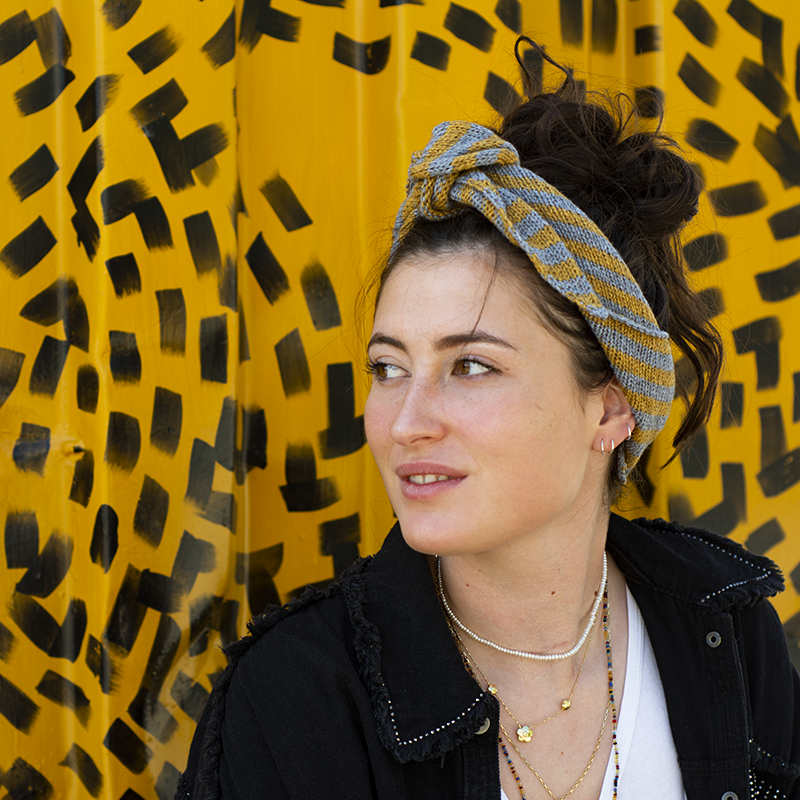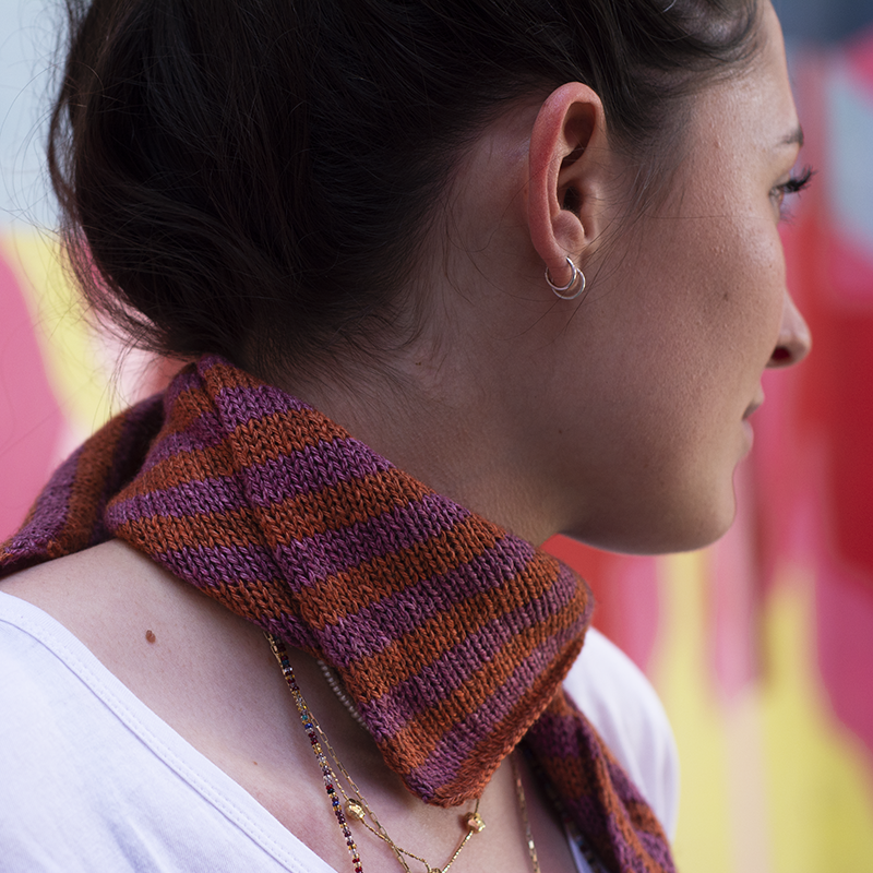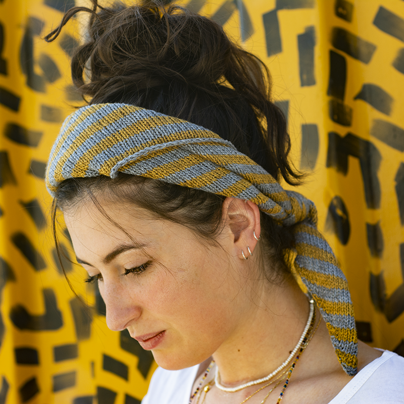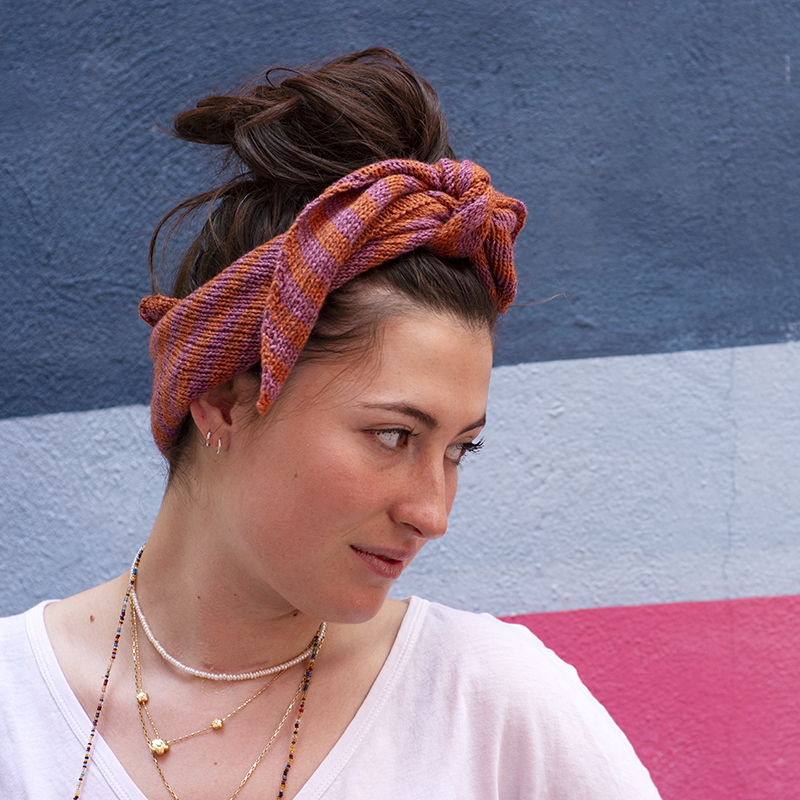 Inspired by this traditional yet modern piece of clothing, we had the idea of creating a versatile, easy knit accessory that can be worn as a headscarf, a foulard , a neck warmer or a headband. We called it From Me with Love and we envision it as a gift of friendship.