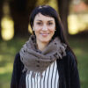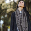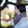 Joji has designed a little sister for the so popular Hipster Shawl. A quick and fun knit in our soft Baby Yak, it’s embellished with small fringes and can be worn long or snuggled around your neck.