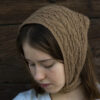 The shawlette can be knit in either Baby Camel or Tibetan cloud. Click on the color and check the description box below for fiber content.
