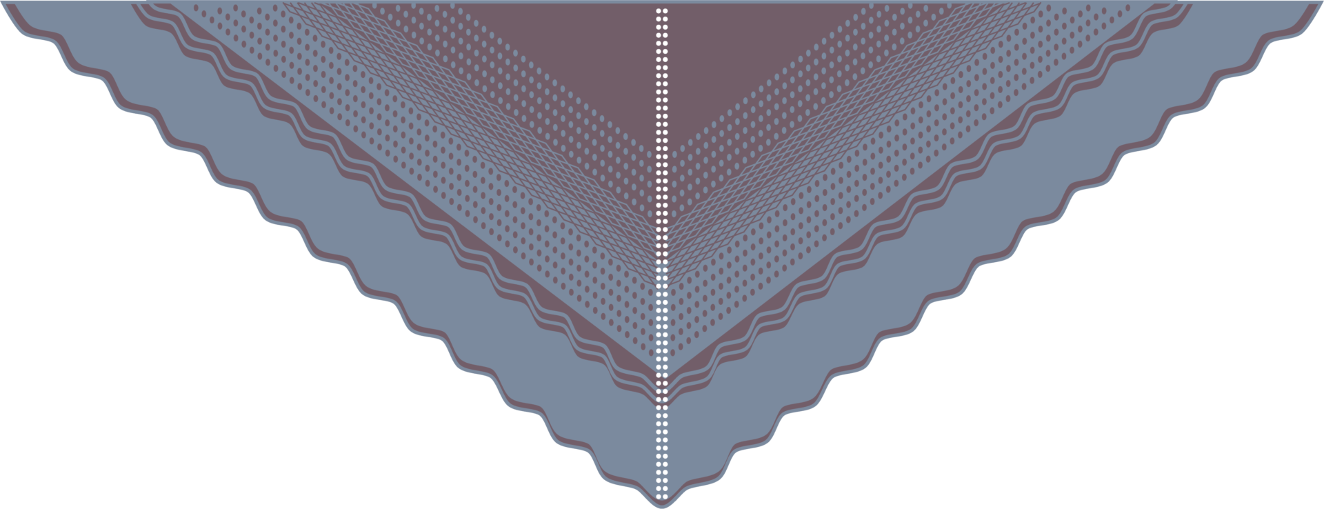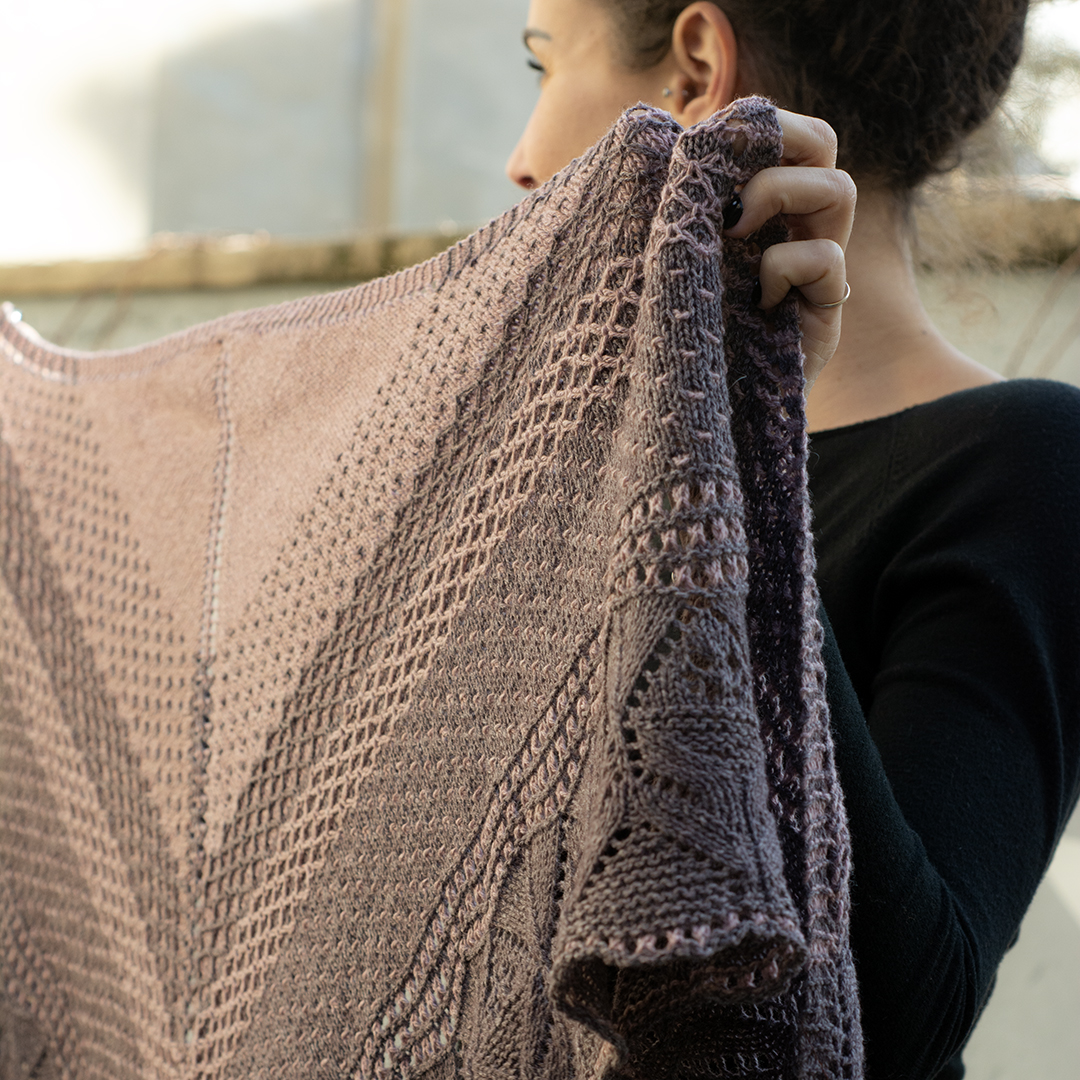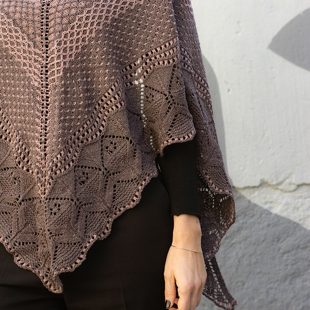 Although this is a shawl, it is important to obtain gauge in order to avoid running out of yarn and to have your finished shawl match the size shown. Adjust needle size as necessary to obtain gauge. The gauge given in the pattern is a blocked gauge. Be sure to wet block your swatch as you would a finished shawl, pinning in place to open up the stitches.