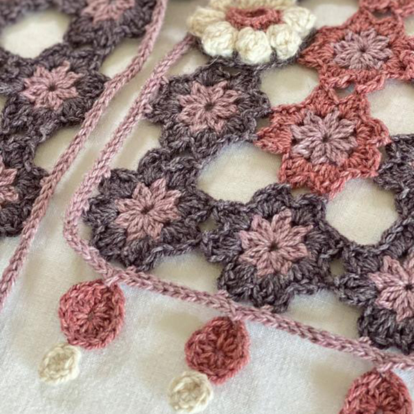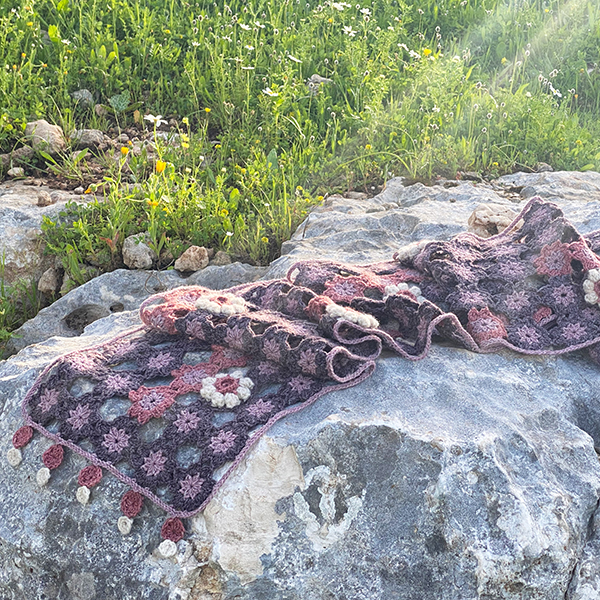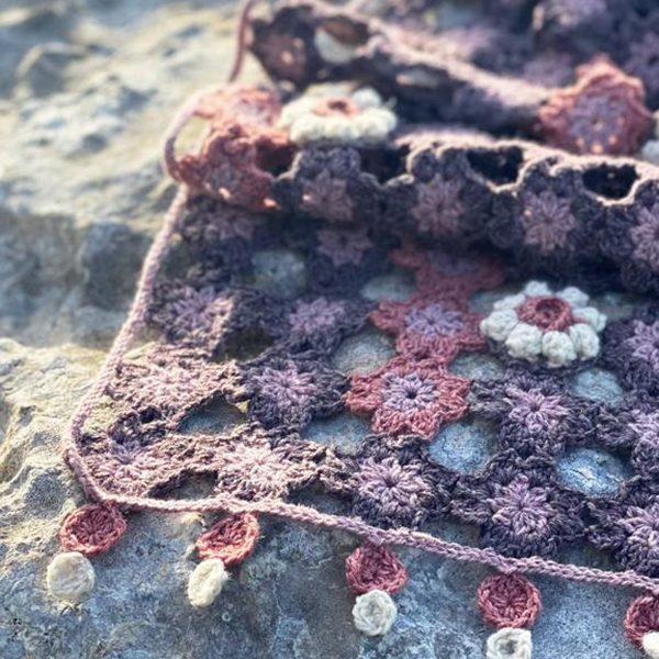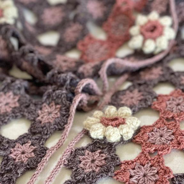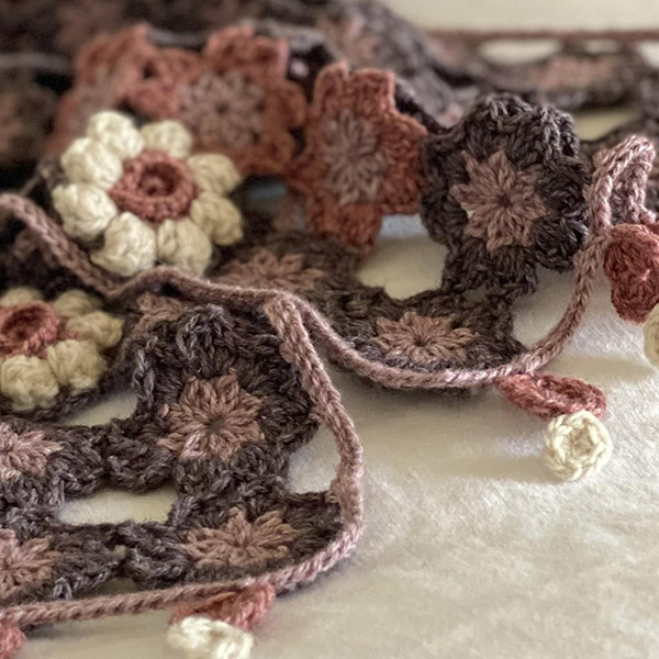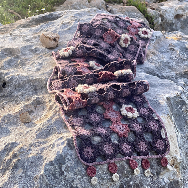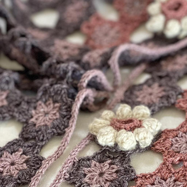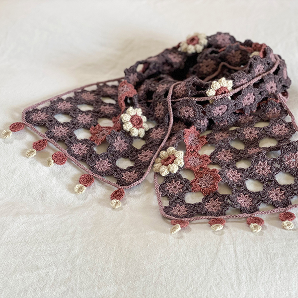 Shinjuku is a fascinating neighborhood in Tokyo, Japan, where the old meets the new, tradition meets innovation and simplicity is captured in a clutter of intricate details; where somehow your vision feels focused and yet blurry at the same time. The Shinjuku scarf is inspired by it all. Made out of 165 flowers that create the lovely sculptured design through the negative space.
