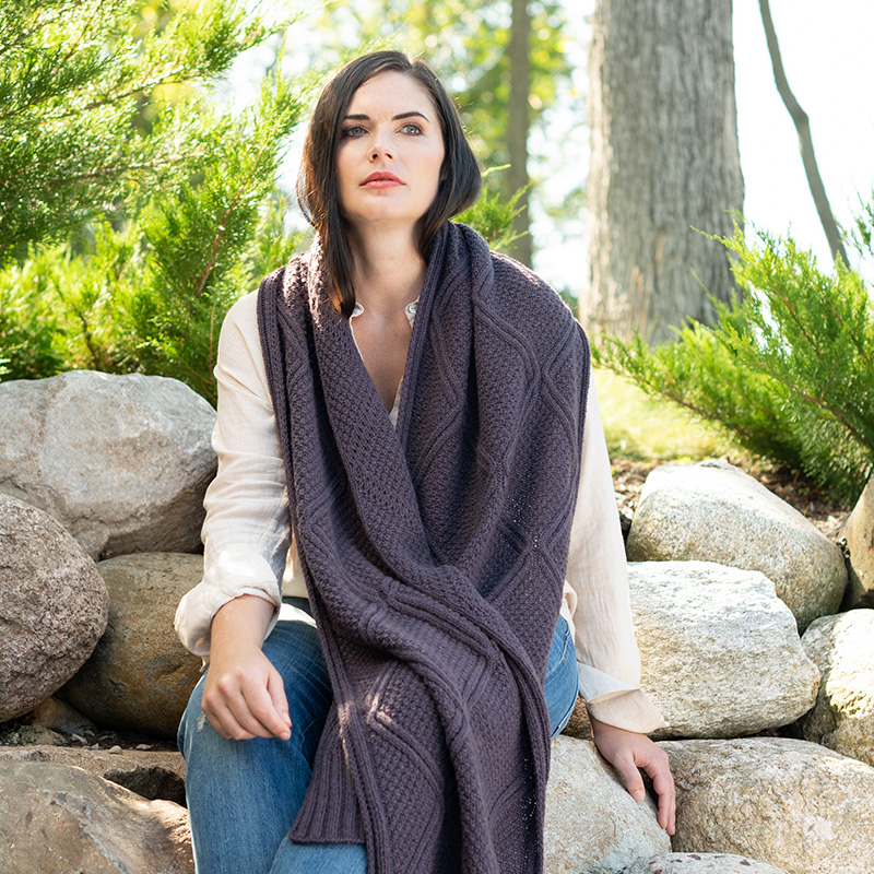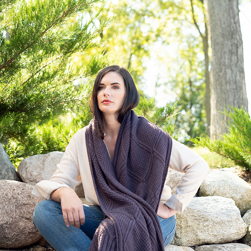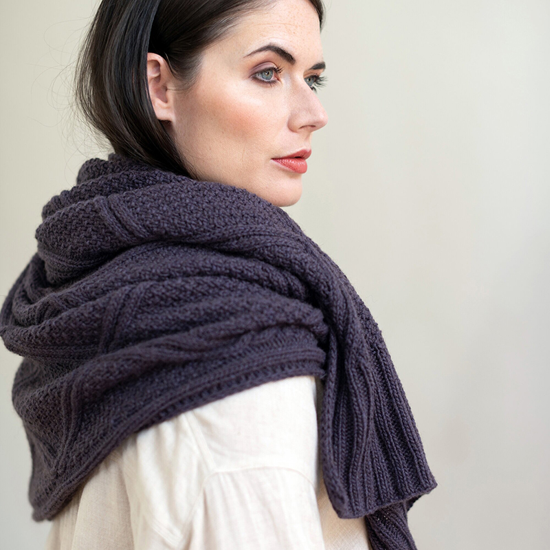 Sille is a show-stopping accessory featuring a stunning textural cabled pattern that is uniquely scaled to knitting your choice of a cowl or wrap.