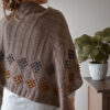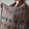 Smilga is a Latvian word for bentgrass – a thin grass with a long stalk and generous top of delicate, blooming panicles full of tiny seeds. The shawl evokes the elegance of this meadow plant with thin cables running throughout the main body and culminating in the beautiful geometry of bobble diamonds reminiscent of the wide, open panicles of the grass.