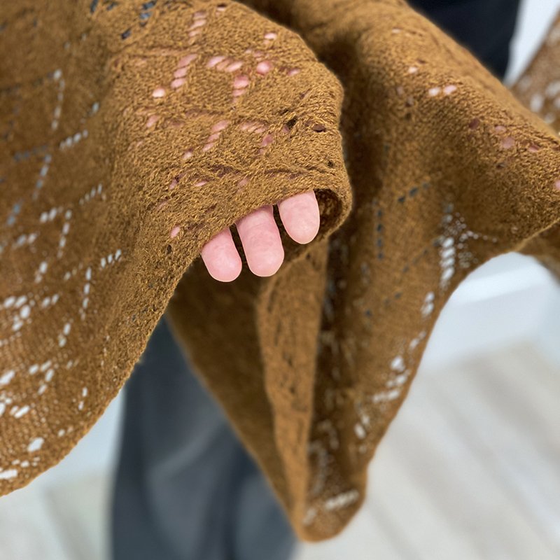 It is my first time to work with mYak’s lace weight, baby yak yarn and I’m so amazed by how soft it is. Not to mention the Mustard colour, it’s one of my favourites.
