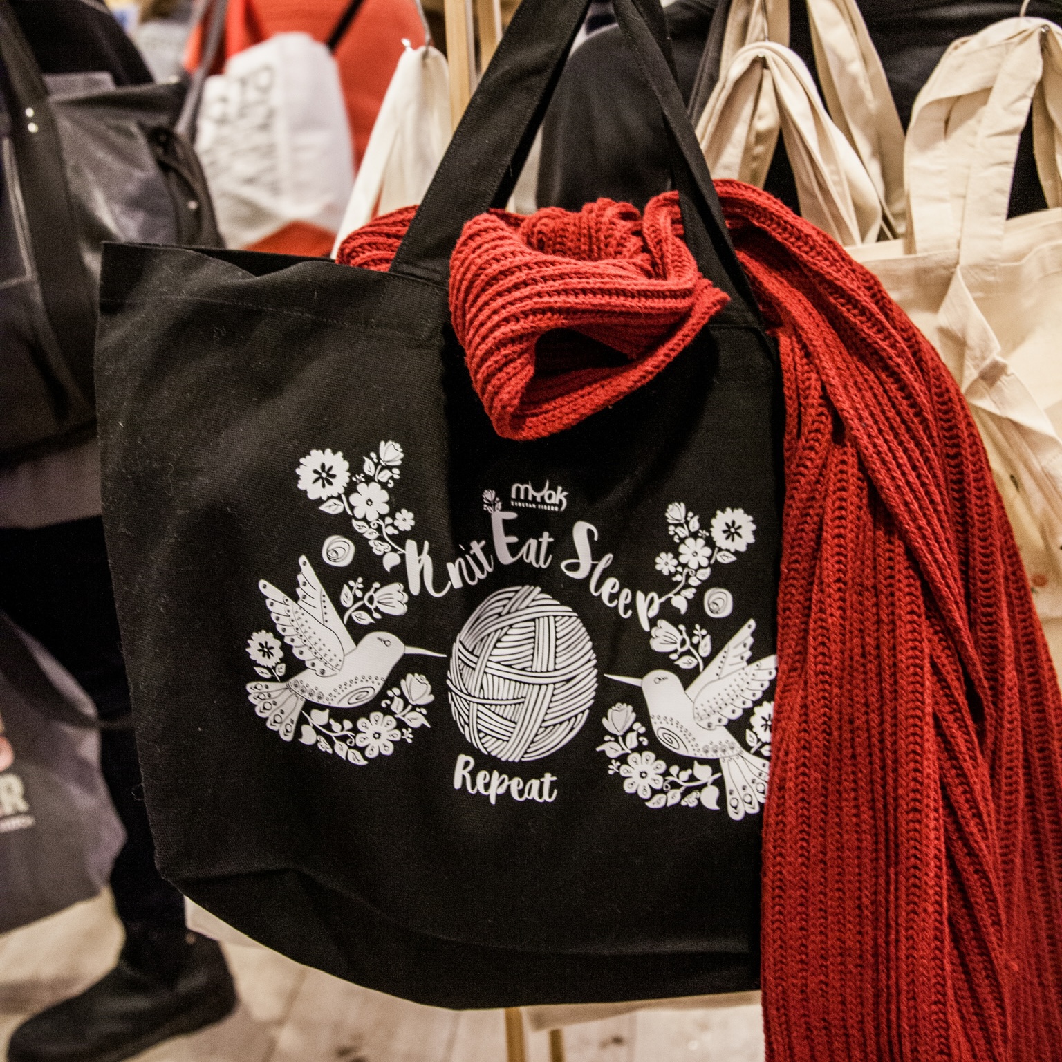Whether you’re heading to a local knitting group, a fiber festival, or the farmer’s market, this tote is a stylish statement of your craft.