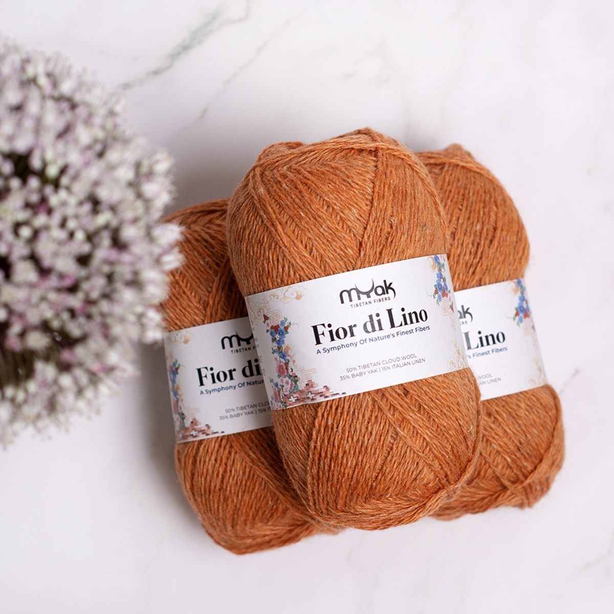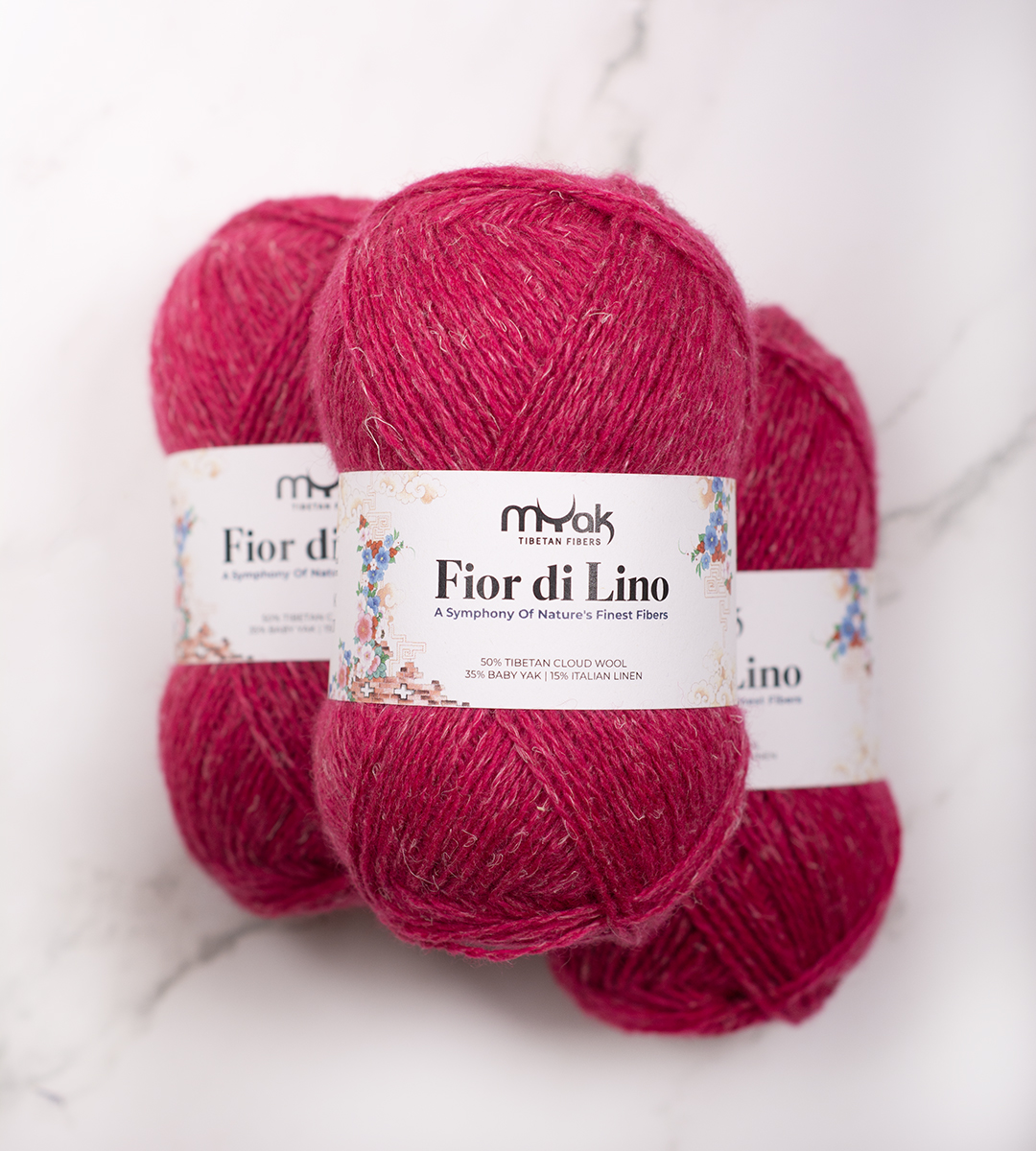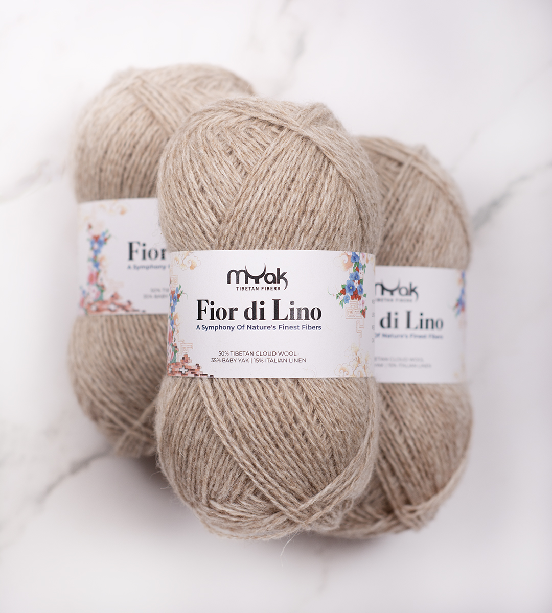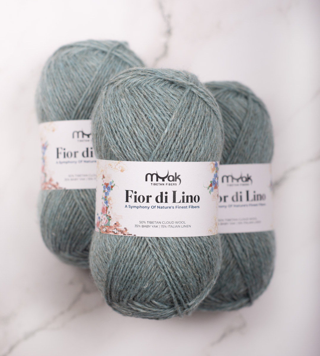 Fior di Lino is a mesmerizing blend that marries the essence of Italian Linen, the ethereal softness of Baby Yak, and the richness of Tibetan wool. This fingering weight yarn, meticulously crafted with 15% Italian Linen, 35% Baby Yak, and 50% Tibetan Cloud, weaves together the verdant beauty of Italian landscapes, the tranquil vastness of the Tibetan Plateau, and the everlasting grace of nature’s allure.