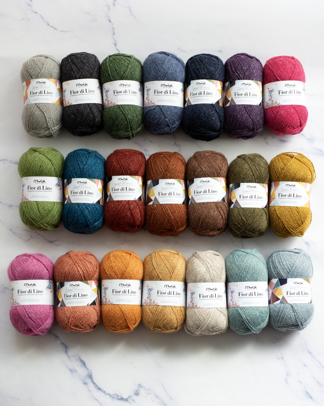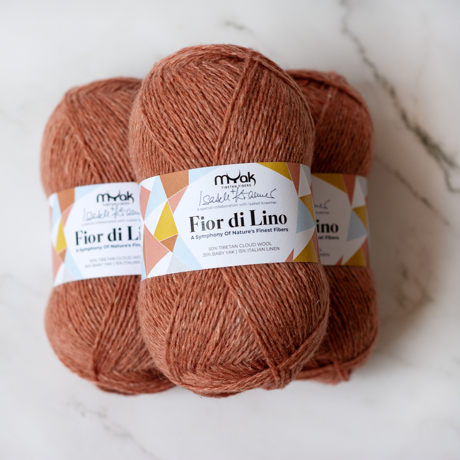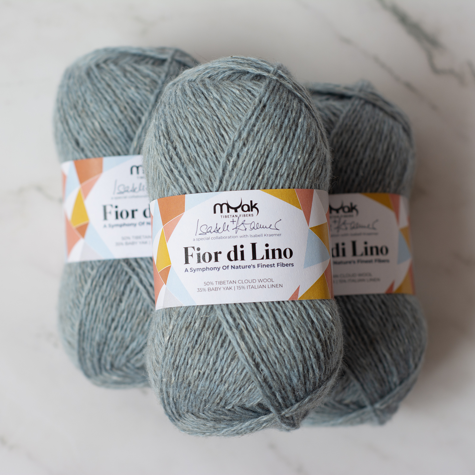 “When Paola first told me about this latest yarn, I was really excited. A blend of Tibetan Cloud, Baby Yak and a bit of linen on top sounded perfect. And my expectations were more than fulfilled! Fior di Lino is a joy to knit with and produces a wonderfully soft yet beautifully supple fabric. The stitch definition and the drape are absolutely amazing. Perfect for sweaters and accessories.